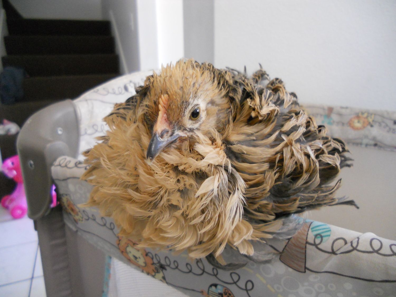 I bought 3 barred rocks 2 or 3 weeks ago and they are supposed to be sexed pullets but I'm a bit concerned about this one because she is getting really big the last couple of days compared to her sister. Well I say sister because I bought them together and don't really know if they were born the same day or from same parents. They are aprox 7 weeks. So any thoughts on Pattie? Also I'm posting a picture of Cinnamon because about 2 weeks ago his/her comb turned a little pinkish and has pinkish color area where wattles grow but they haven't changed. Cinnamon is also a Brahma Bantam Frizzle and 7 weeks old. One thing and I don't know if it matters but Cinnamon always sits in a little ball shape. Not sure how to explain it but you can see in the first picture what I mean. Thanks!