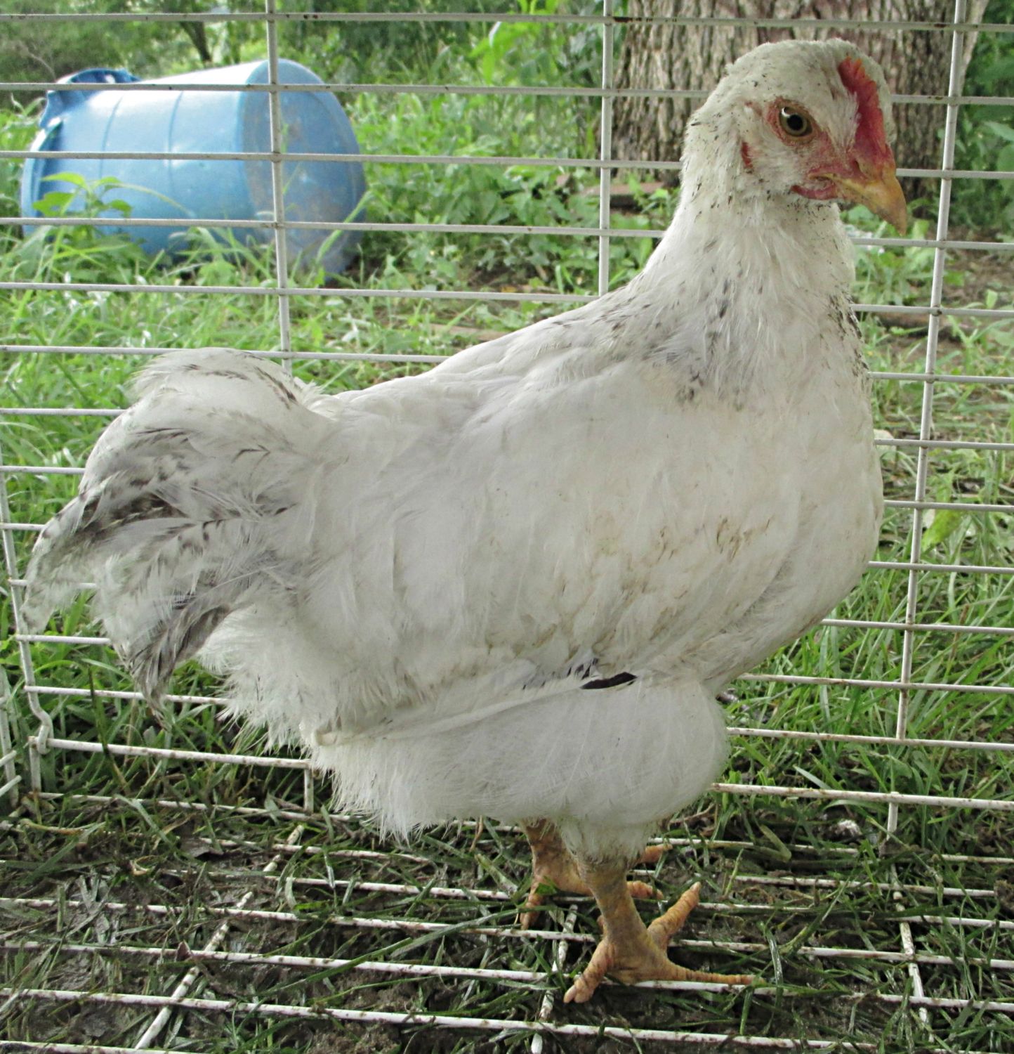 The first one is a cross that have some Delaware in it, I tend more to cockerel it is quit hard.The second pic, are mix breed, the closest bird is a cockerel the second is a hen.(is it the same bird as the first pic?)
