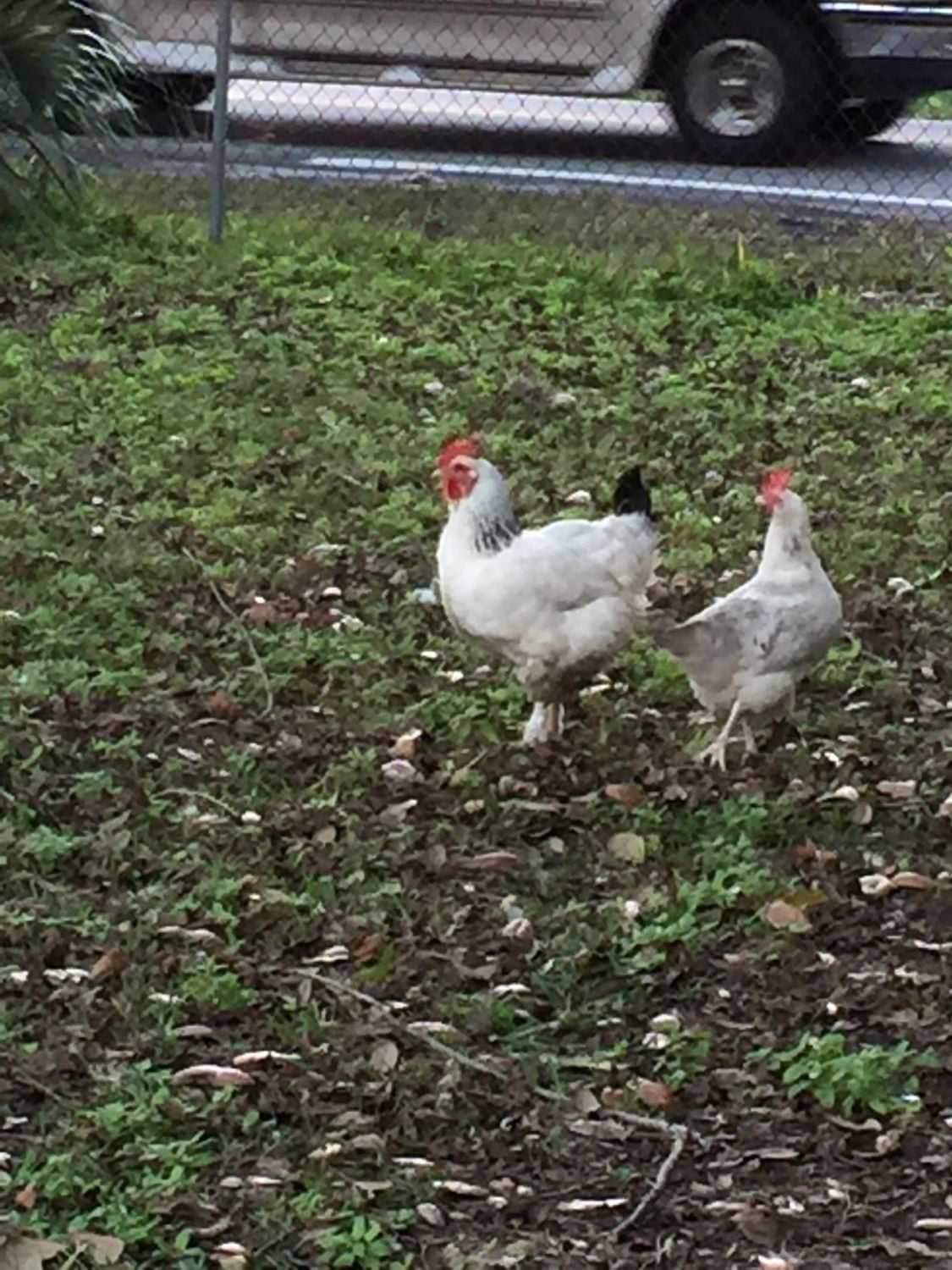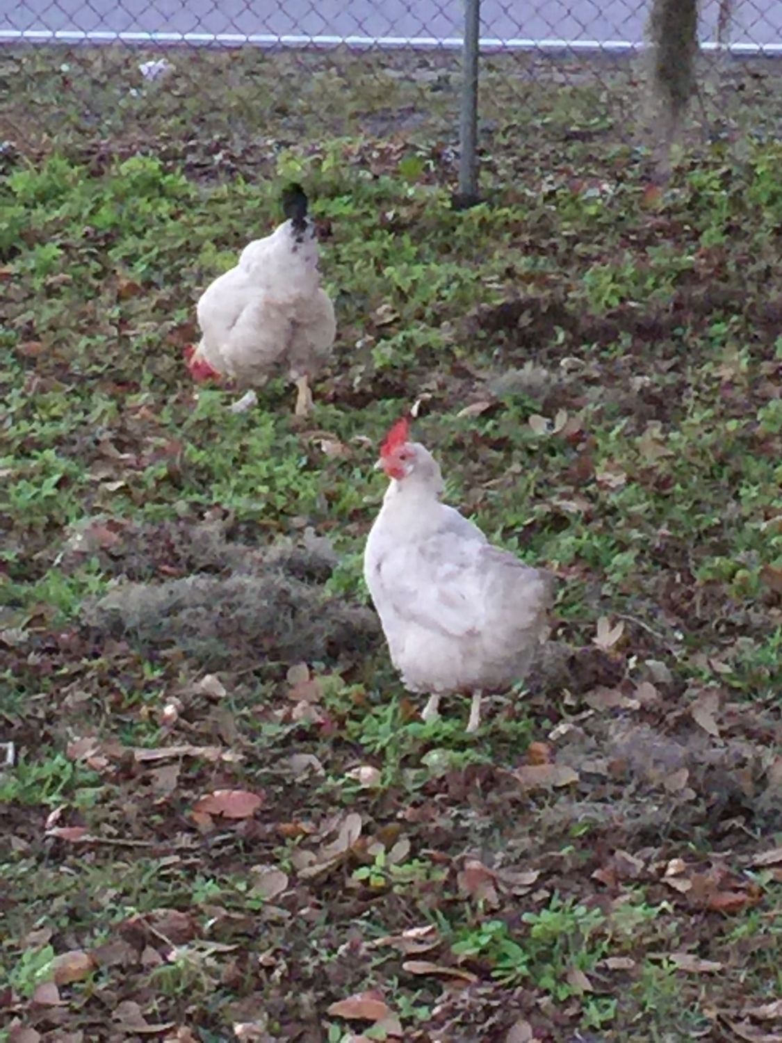 She is white with a dusting of gray on her feathers from her waist back. Single up right comb kinda small and triangular. White beak, white legs. Either her (Winky) or the Brahma is laying a off white lg egg.