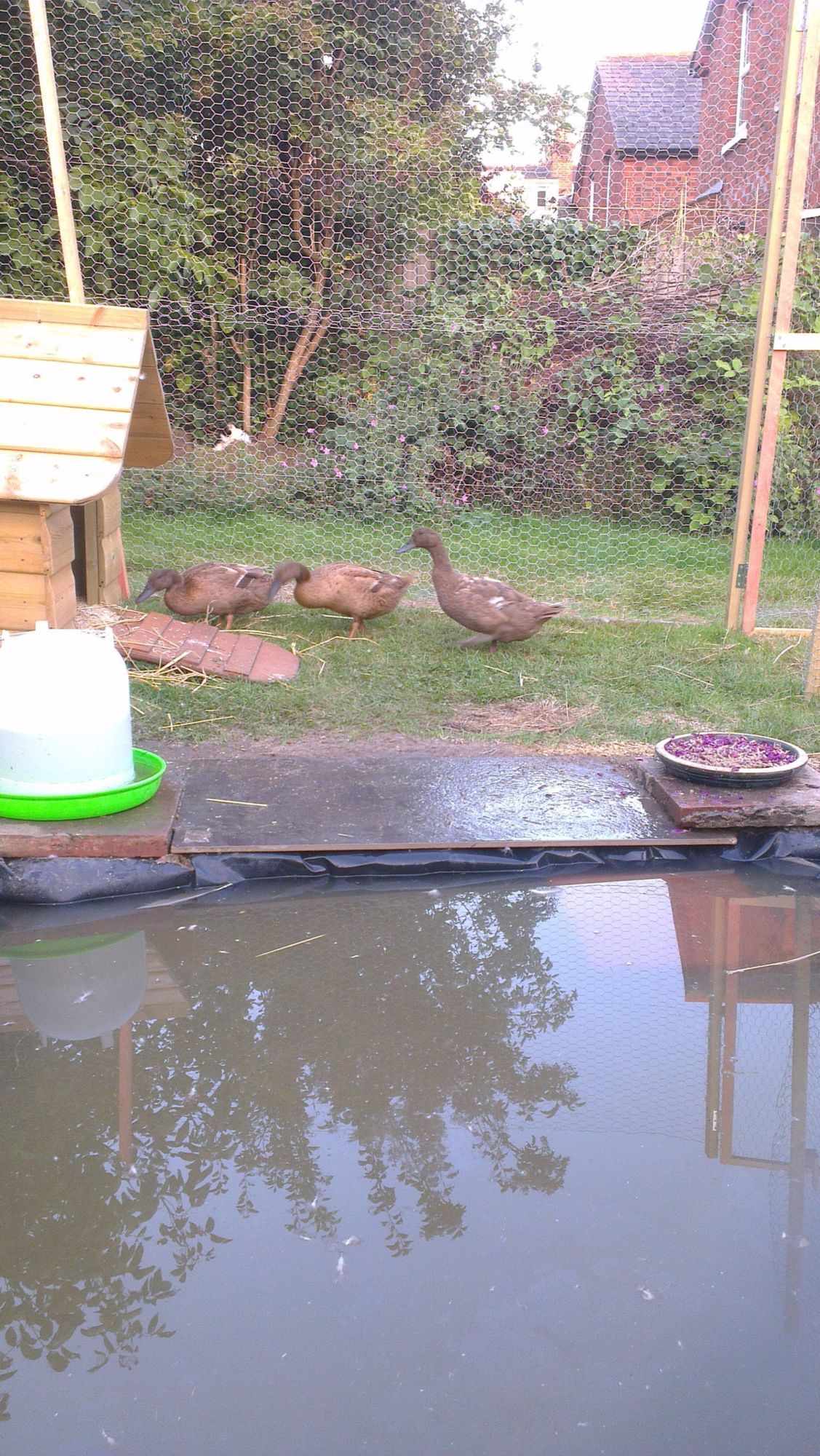 I cut a chunk out of the front of the green plastic tub so the pond liner had a place to fit in/over, make sure that the pond liner comes over the edge of the tub and down that way it isn't dripping back and under your pond.