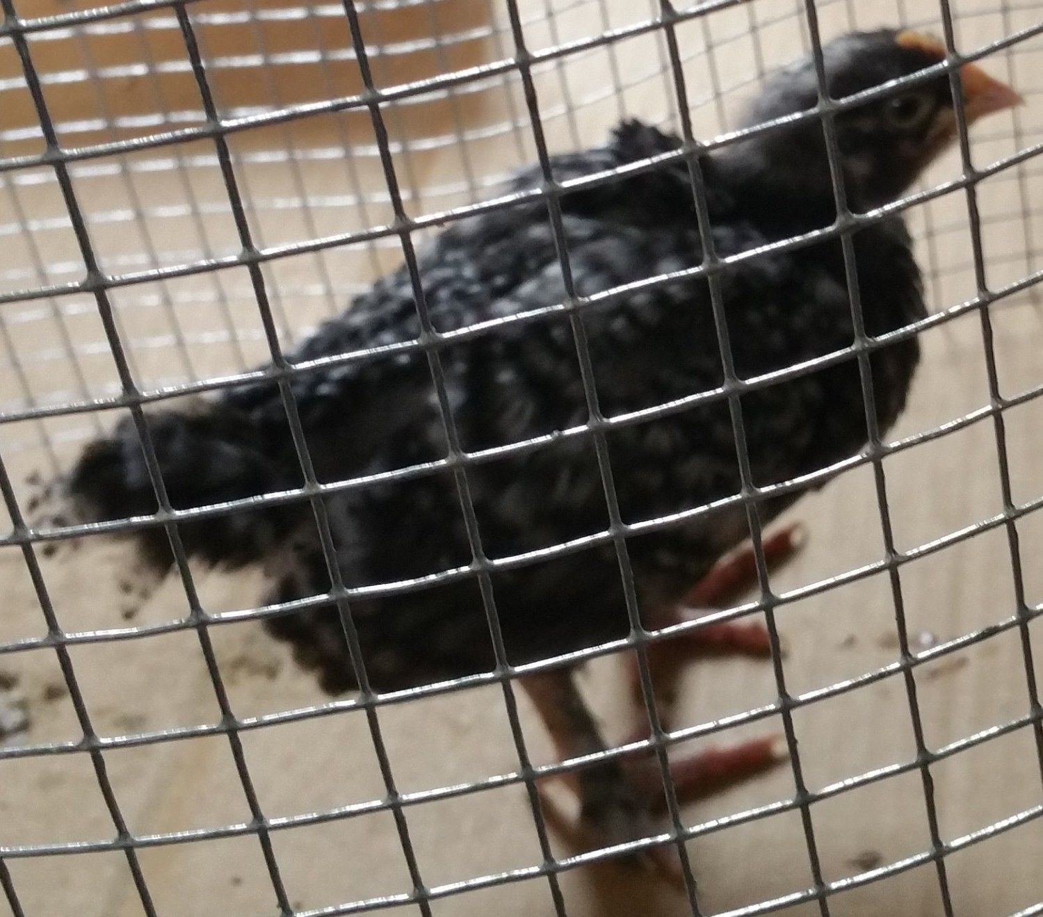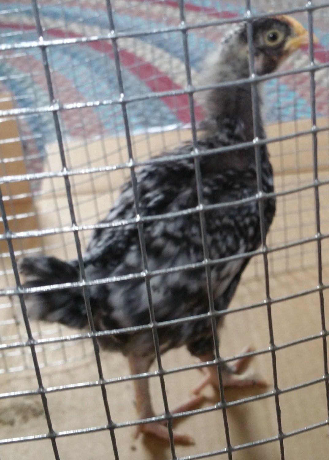 This first is smaller than the other two, not even a hint of pink in the comb or wattles. The demeaner and behavior are different from the other two as well. Still quite active and no signs of poor health - just smaller.