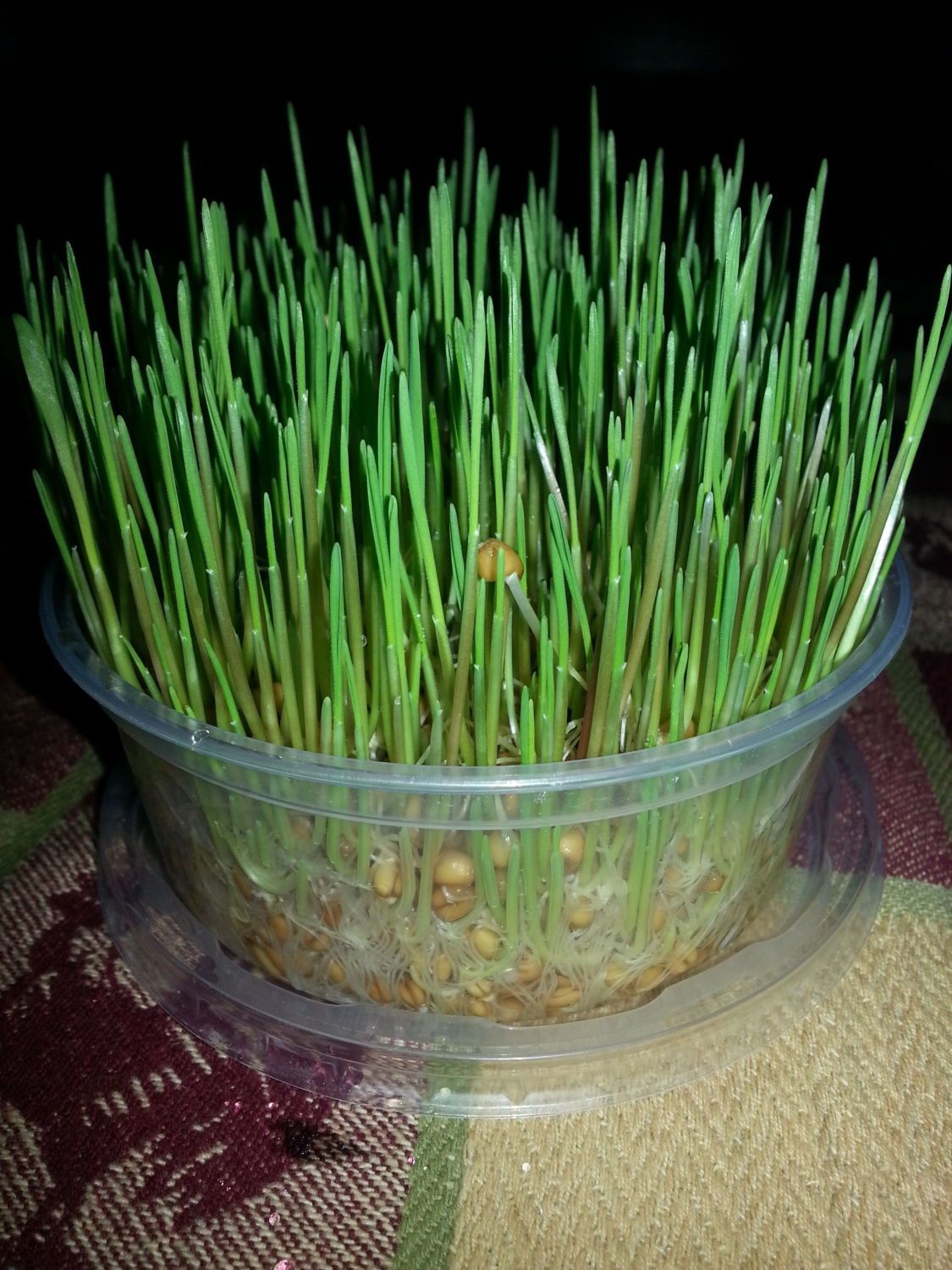 When its about six to eight inches tall it will be ready to feed to the girls. It will basically look like a piece of sod without any dirt. It will come out of the container and go right into the run for them to enjoy! It it supposed to be super nutritious for them and contain almost all the essentials nutrients they need. I believe the is a breakdown of the nutrients, I will see if I can find it and post it as well.