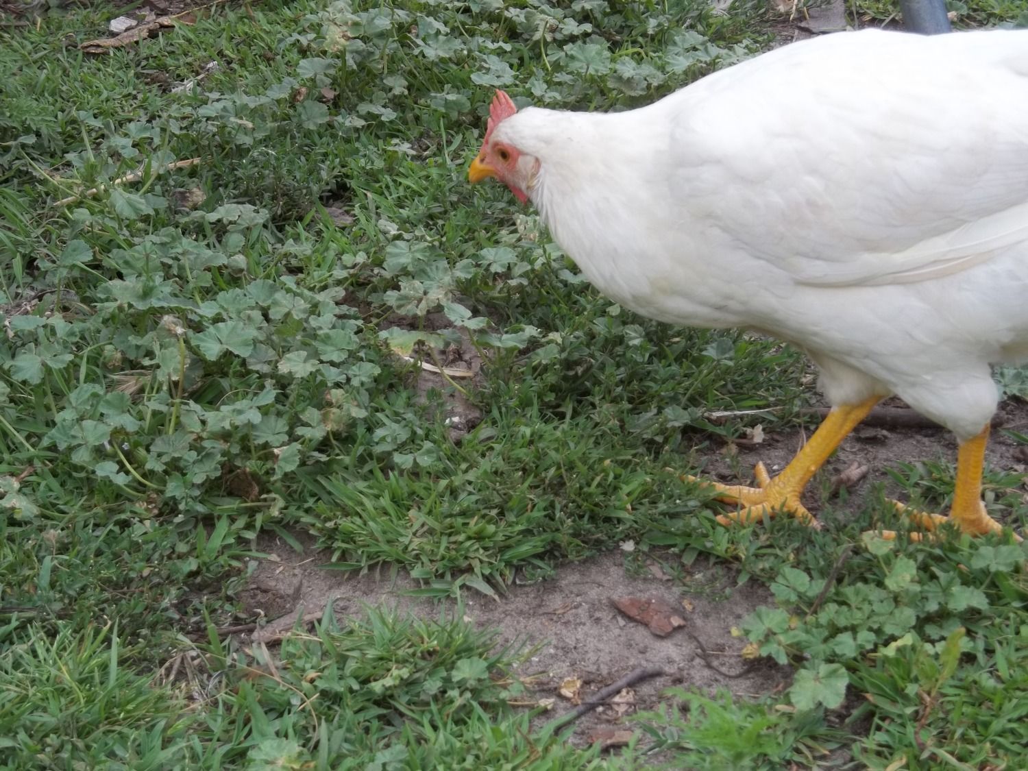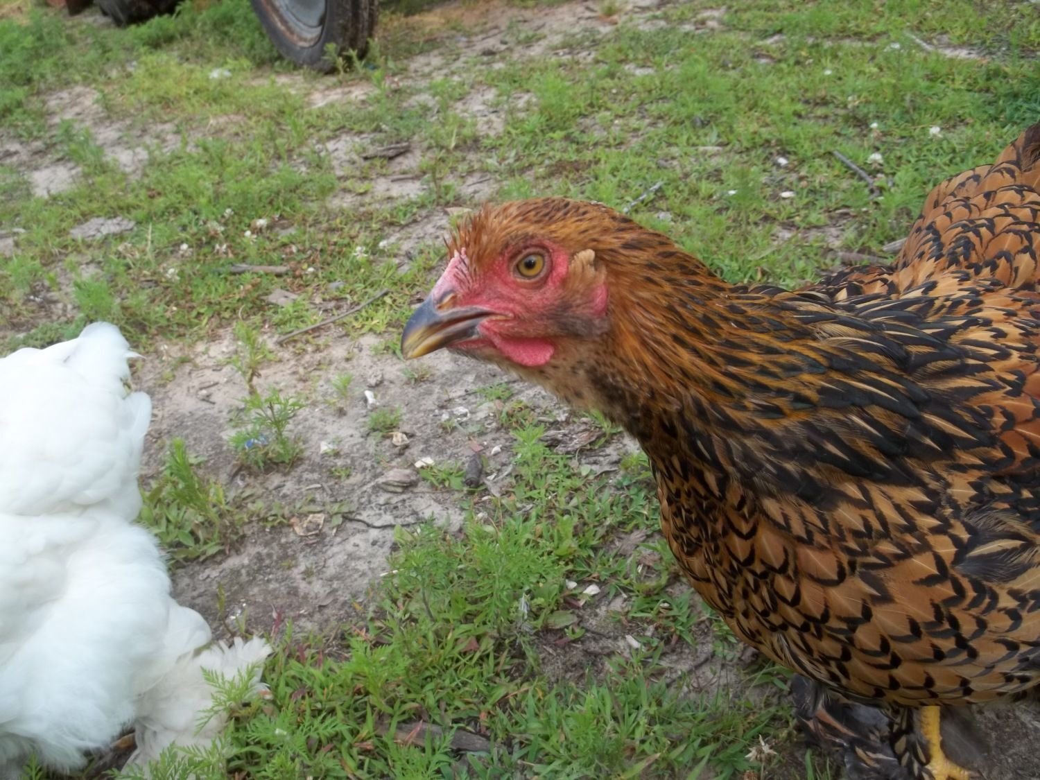 Tetra Tints (Leghorn/RIR hybrid) are white with a yellow tint to the feathers. They are small, fast and can fly very well - and I am told they are good layers - we shall see...