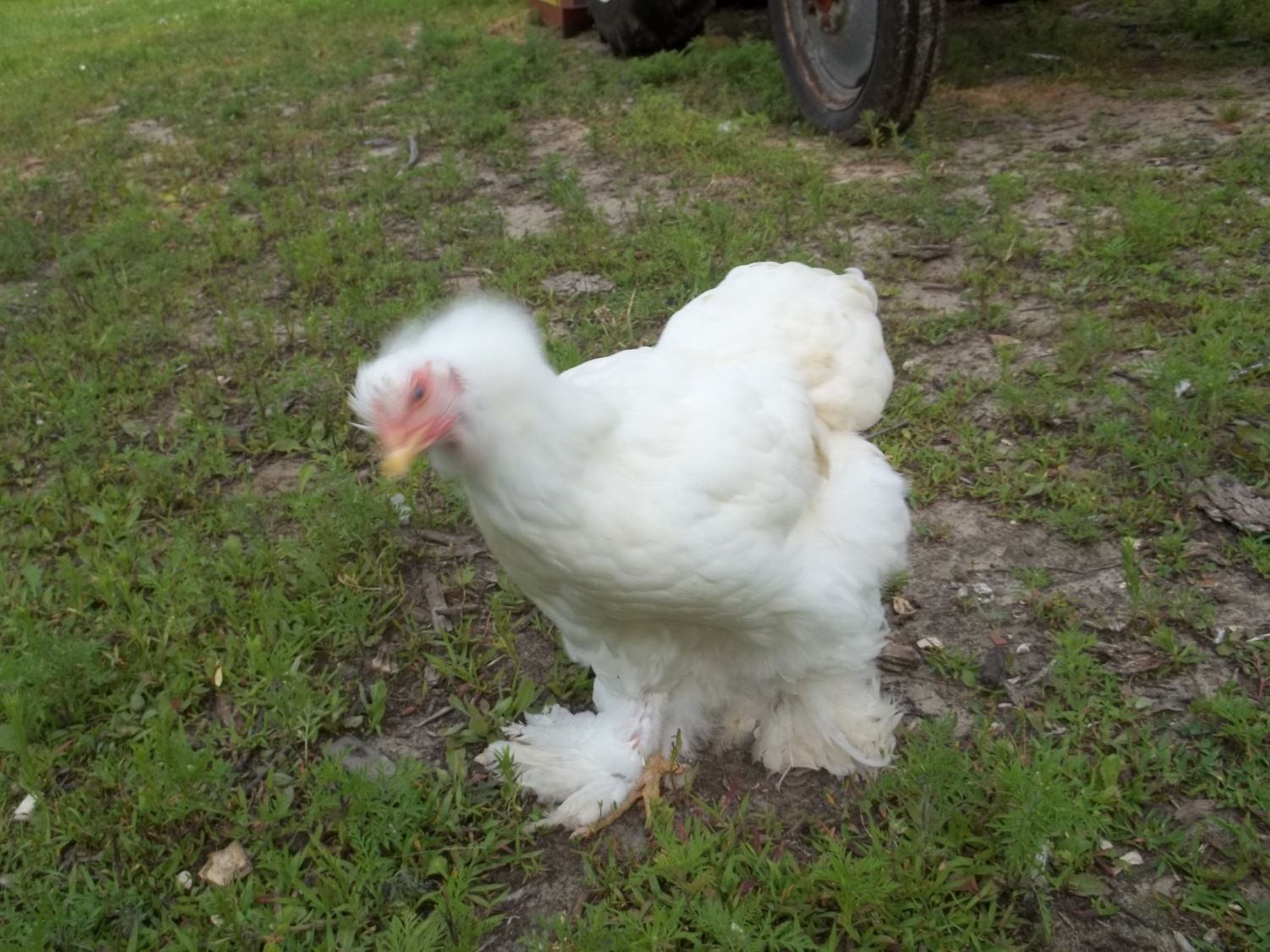 Pickles has an appointment at the vet tomorrow at 3:30 pm :) I hope its good news! She seems absolutly fine except the draggin of her leg :( Eats drinks, jumps up on logs, goes up the ramp to the roost, all while hopping on her good foot, and the girls love her. I keep her in a cage at night in the coop so shes not trying to get up on the roost and then put her out with the girls every am. Actually they all sleep around her when shes in the cage.