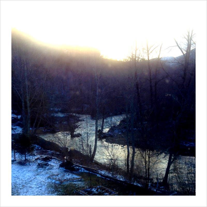 Everything is basically back to normal here. The bridge opened. BF came home. The river dropped and the dusting of snow is beautiful, although most of it blew away in the wind gusts and bitter cold. Coop and yard are still a mess, but we can't do anything about that until it thaws. A lot of roads are still closed due to mudslides and fallen trees, but none that I use often. Not everyone was so lucky, so we are thankful. The chickens seem fine too. I even had my first 3 egg day!