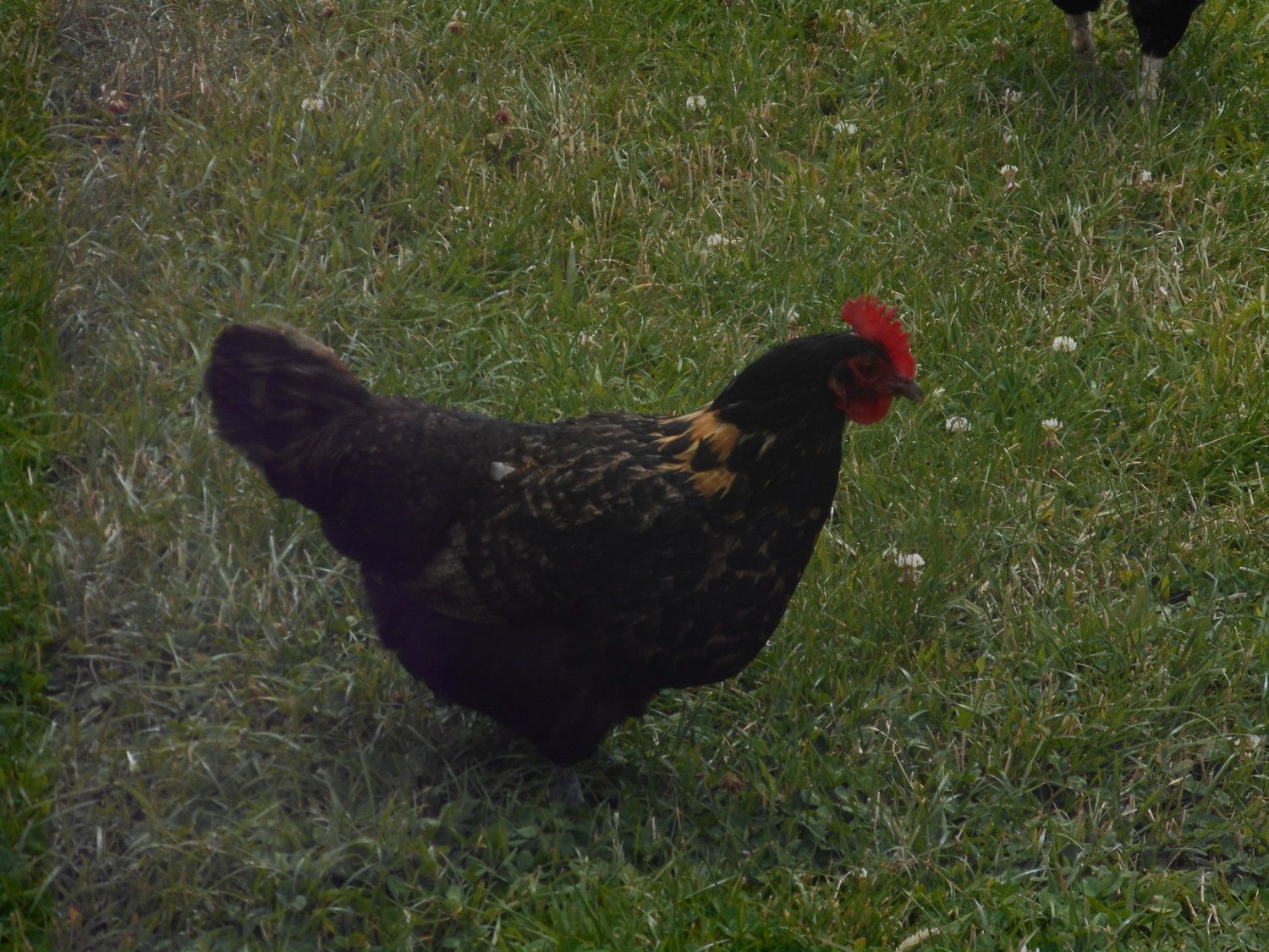 free range flock, only 2/8 hens, 1 chick and the Rooster