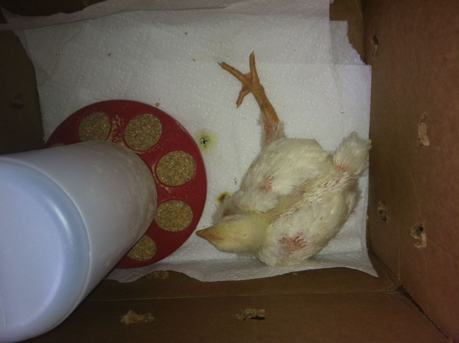 Apr 23, 2014 #1 NikkiBoyce 2012 In the Brooder 6 Years Joined Oct 1, 2013 Messages 39 Reaction score 1 Points 36 Went to go check on my meat chickens and found this guy like this. There is no swelling and it is eating and drinking fine.