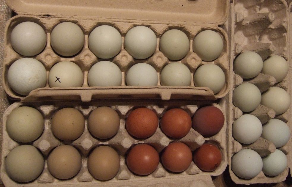 5 marans....1 welsummer.....4 olive eggers.....and the rest.....EE/Ameraucana. Soooooooo count me in.
