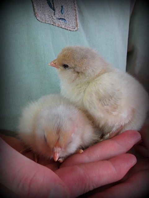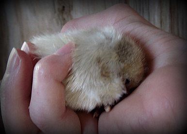 An ADORABLE pale Cream/Lavender Easter Egger chick from the same batch - we ended up with two that look identical to this, and their mother is a beautiful light lavender Easter Egger.