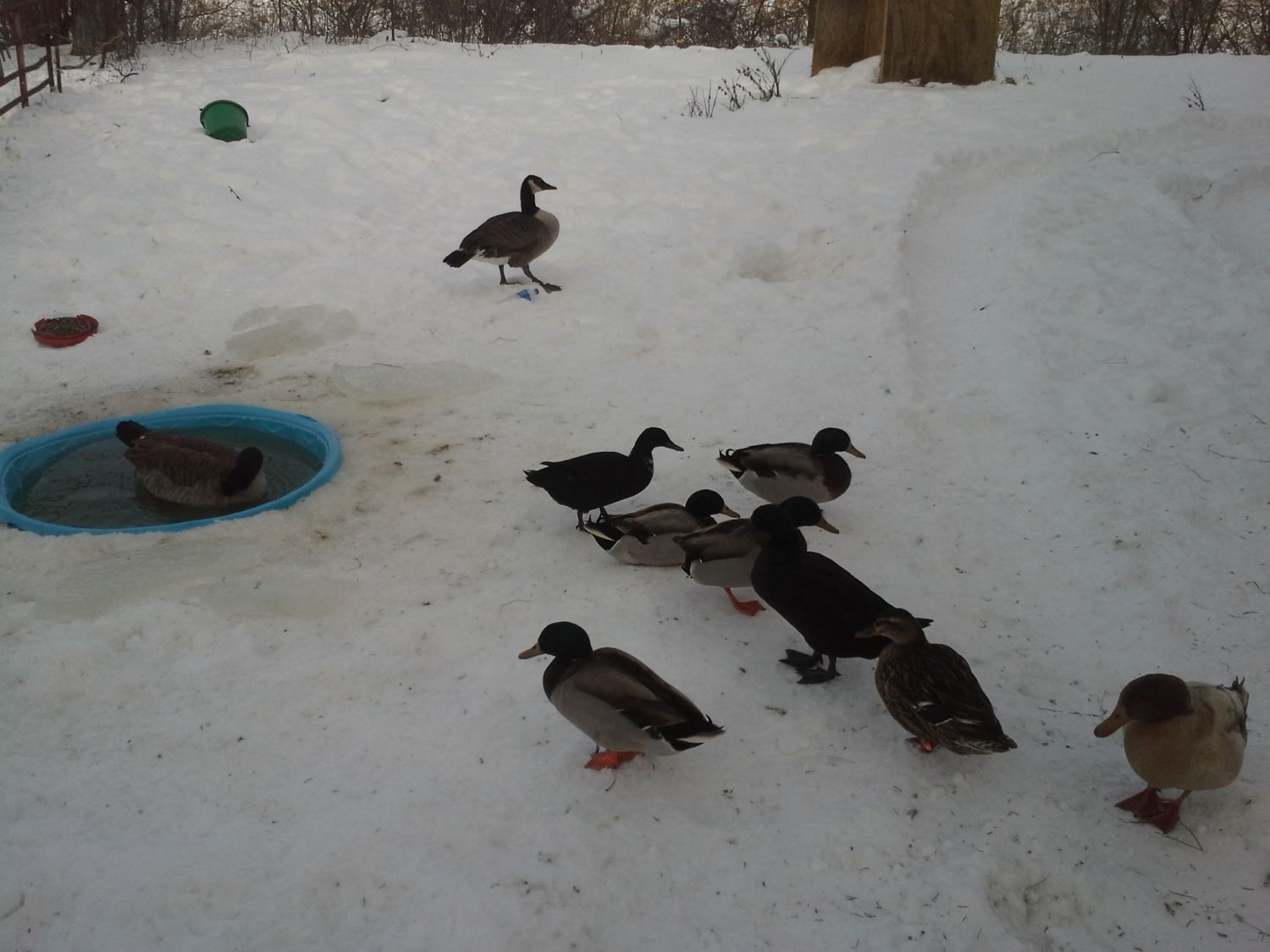 this is there winter area where they swim in a kiddy pool that i fill every morning with warmer water and they clean their feathers.