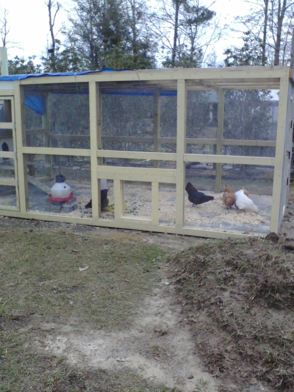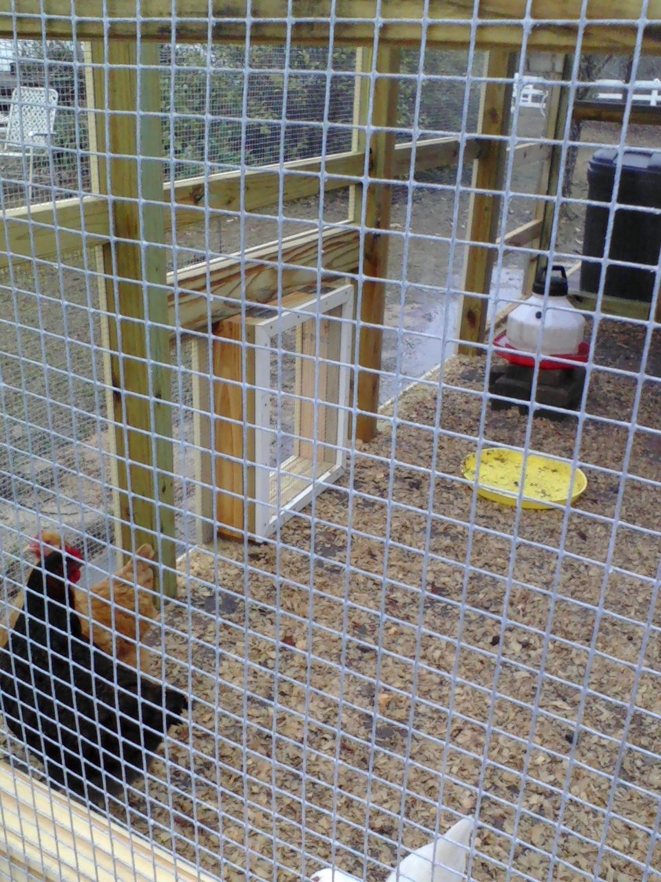 This is it from the other side. I put a window in, so they can stay indoors during the day if they like. It's had two coats of wood preservative.