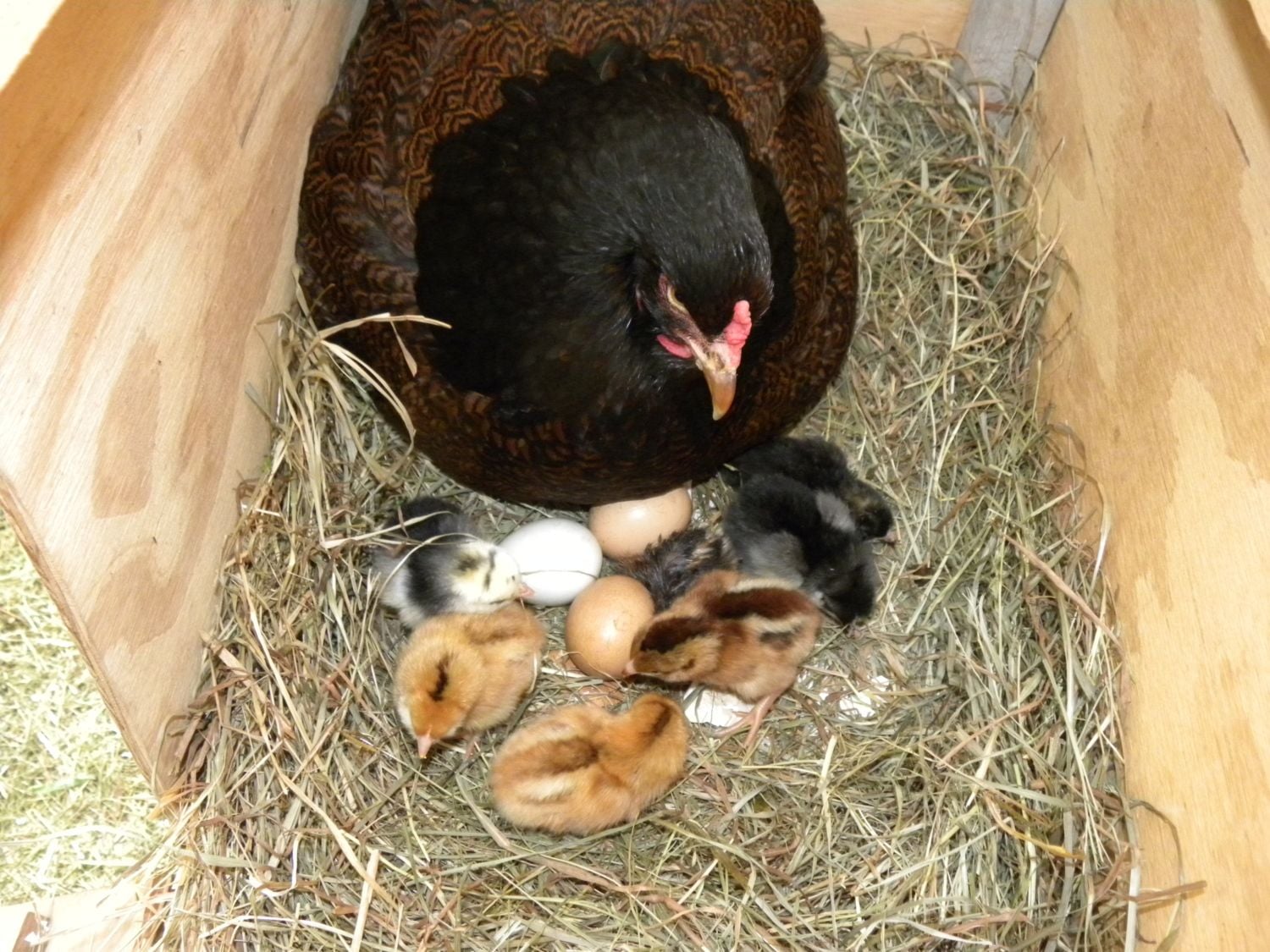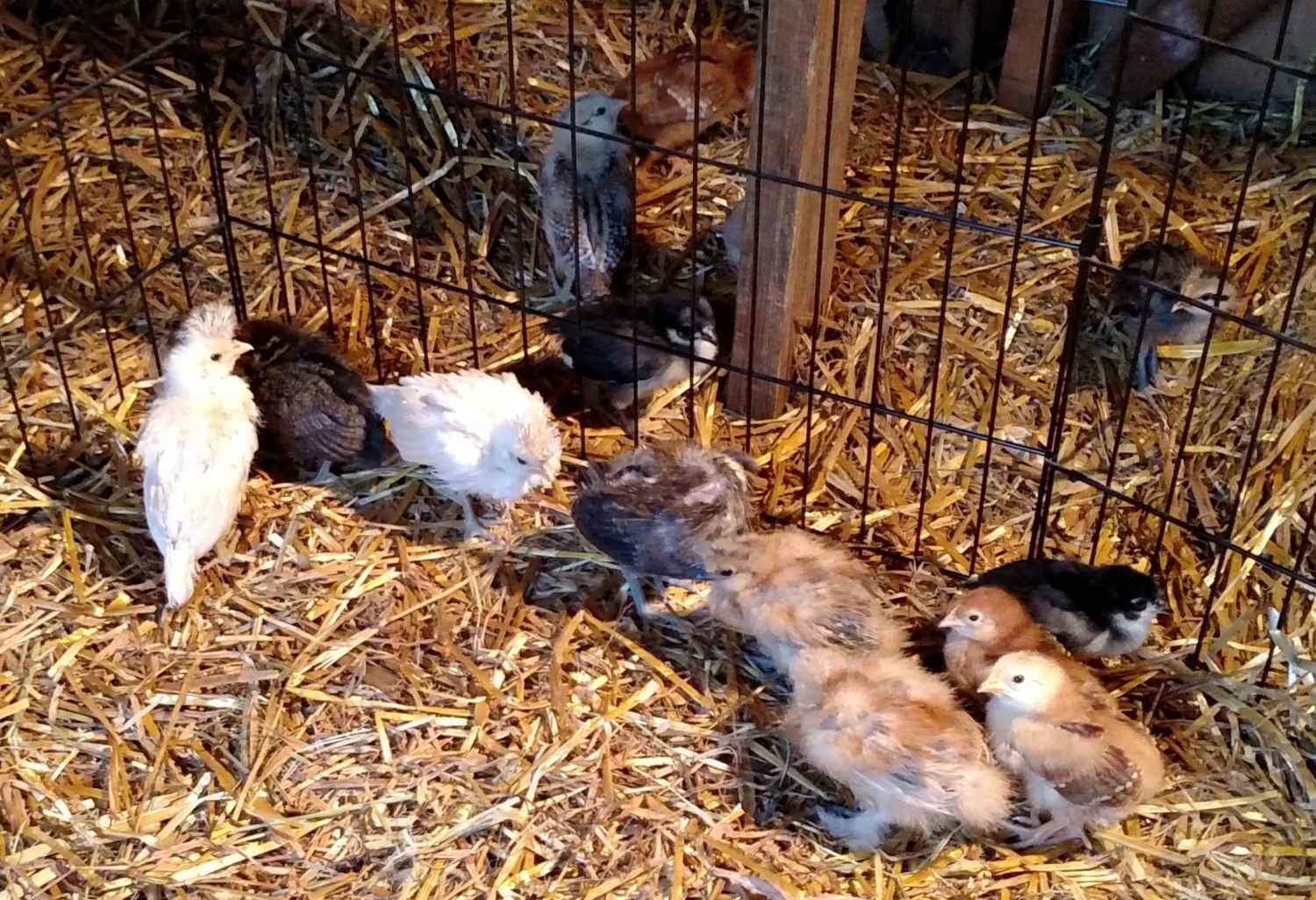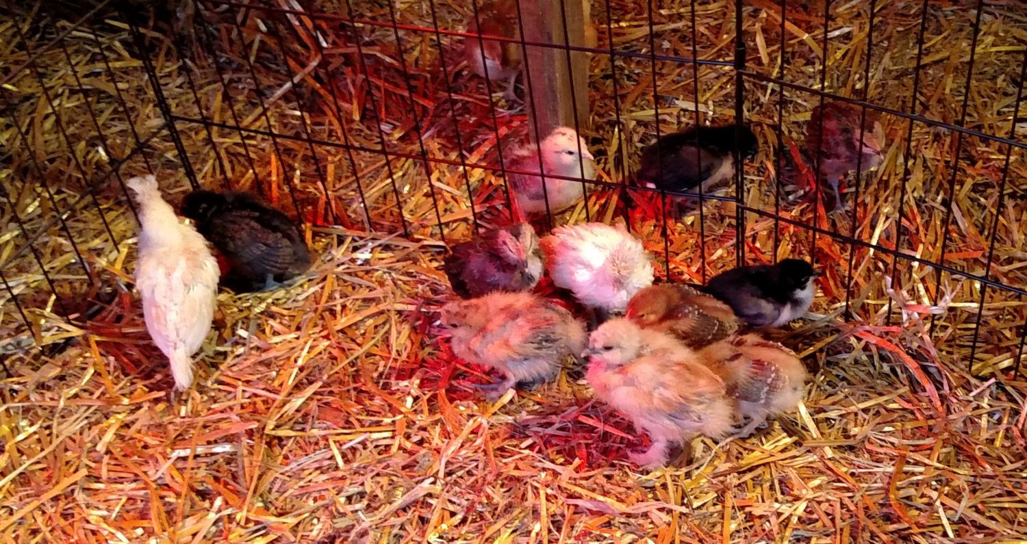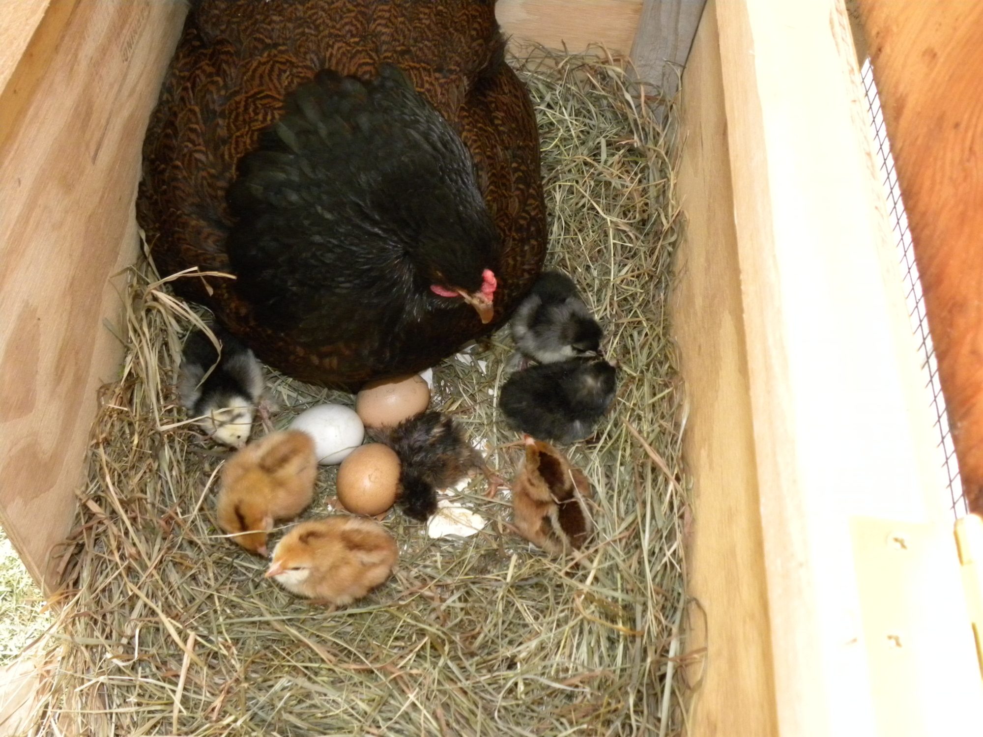 9 chicks (4 Breda, 2 Barnevelder, 2 FaverollexWelsummer and 1 Welsummer)