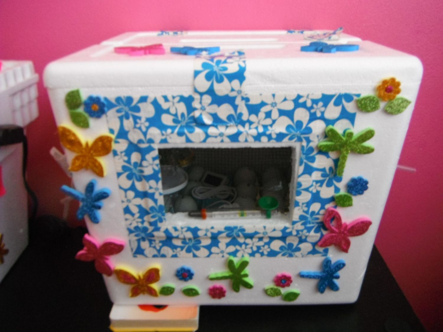 Guys... just out of curiosity... what are your set ups... You guys got pics? Homemade or store bought incubators... just curious... this is mine. the one to the left of it is my hatcher... I have it called the "messy box" it gets messy during lockdown/hatch. I am going to toss the messy box since I bought a genesis... and just keep this one for staggered hatches. We started this project as a learning tool for the kids (both girls as you can tell by all their stickers...lol )...but me and hubby are having fun too.