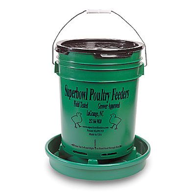 The base looks wider than the bucket which would allow rain/snow to build up and make a mess of the feed. You can build a flat roofed station to hang it under (or another feeder) to help protect the food.