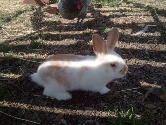We also have a cat who apparently thinks she is a rabbit! Does that count? Her stinkeye puts my chickens to shame!