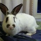 I'm going to a show next month. My NZ won a best reserve in show when she was younger. She also won a leg at an ARBA show, but now she has saggy skin and low shoulders. And she just made a huge mess of my living room. There is hay everywhere!