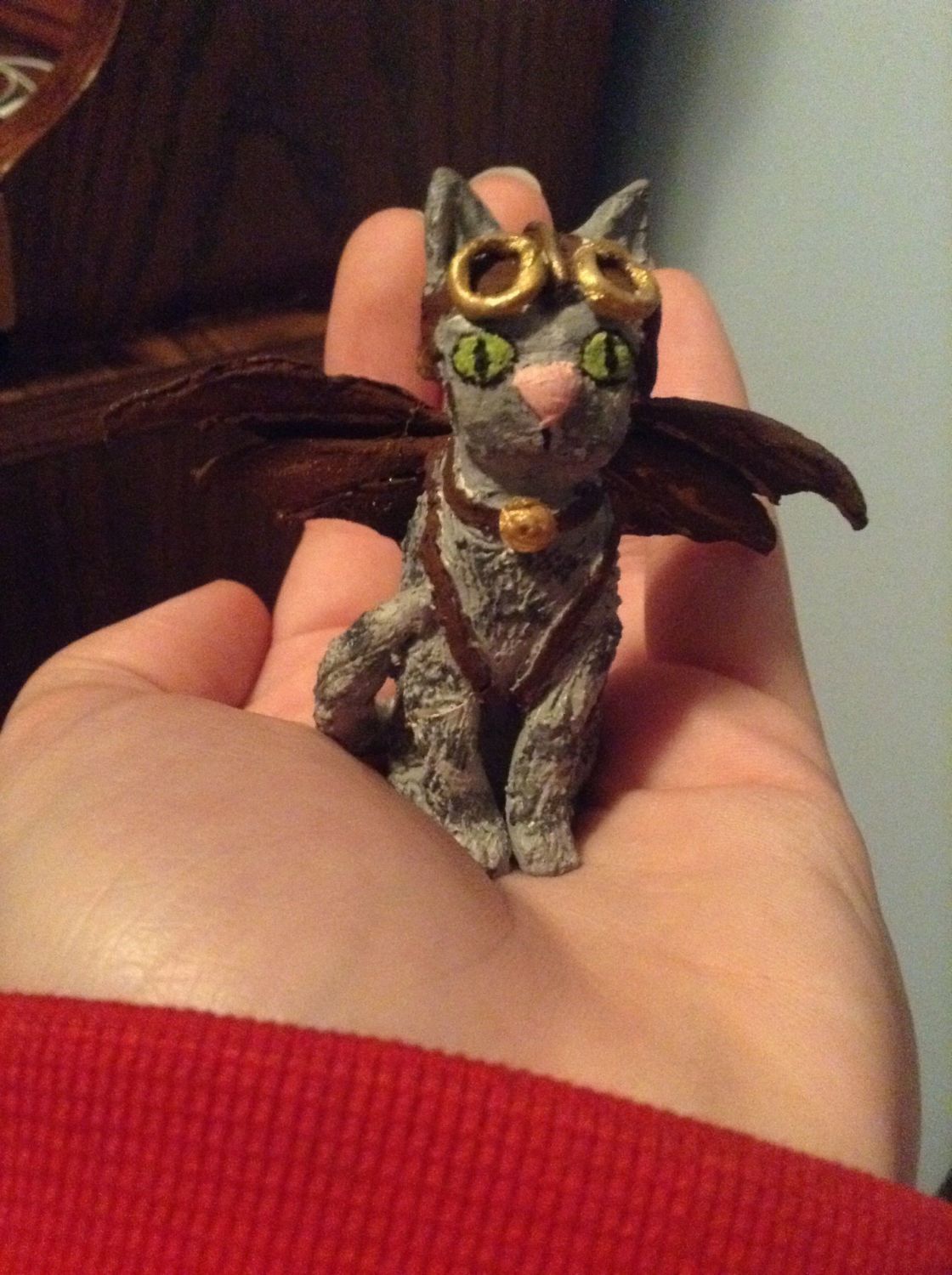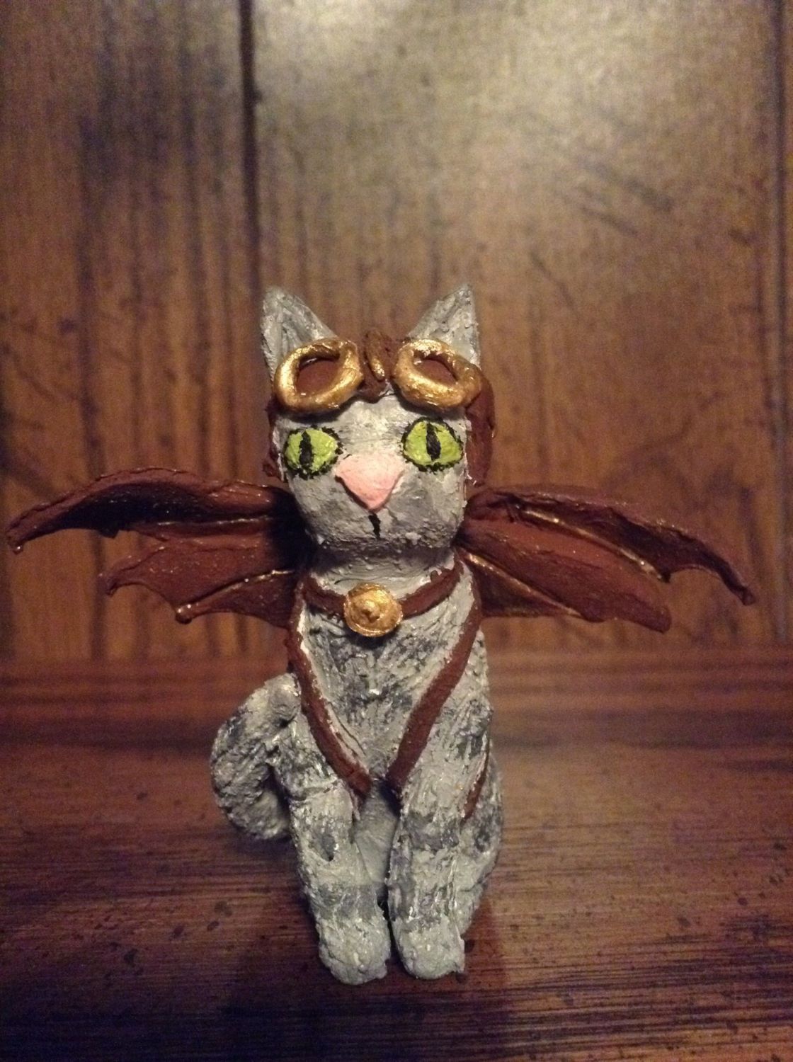 Here's a steampunk cat I did out of polymer clay earlier this year: