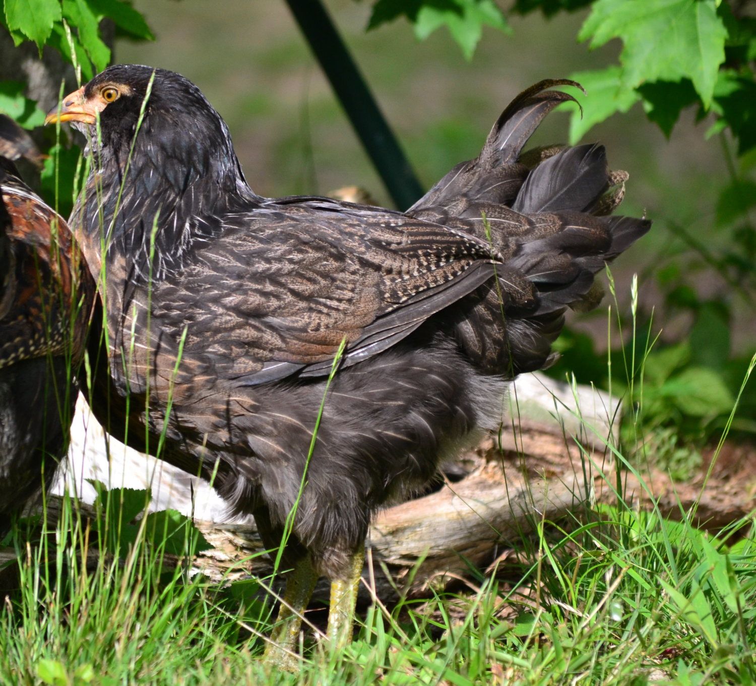 Again, I was just thinking about how your chicks were doing. They certainly grew into a colorful birds. I really like the shot of one of your chicks, the dog, and in the back, the horse face. That's a really great picture.
