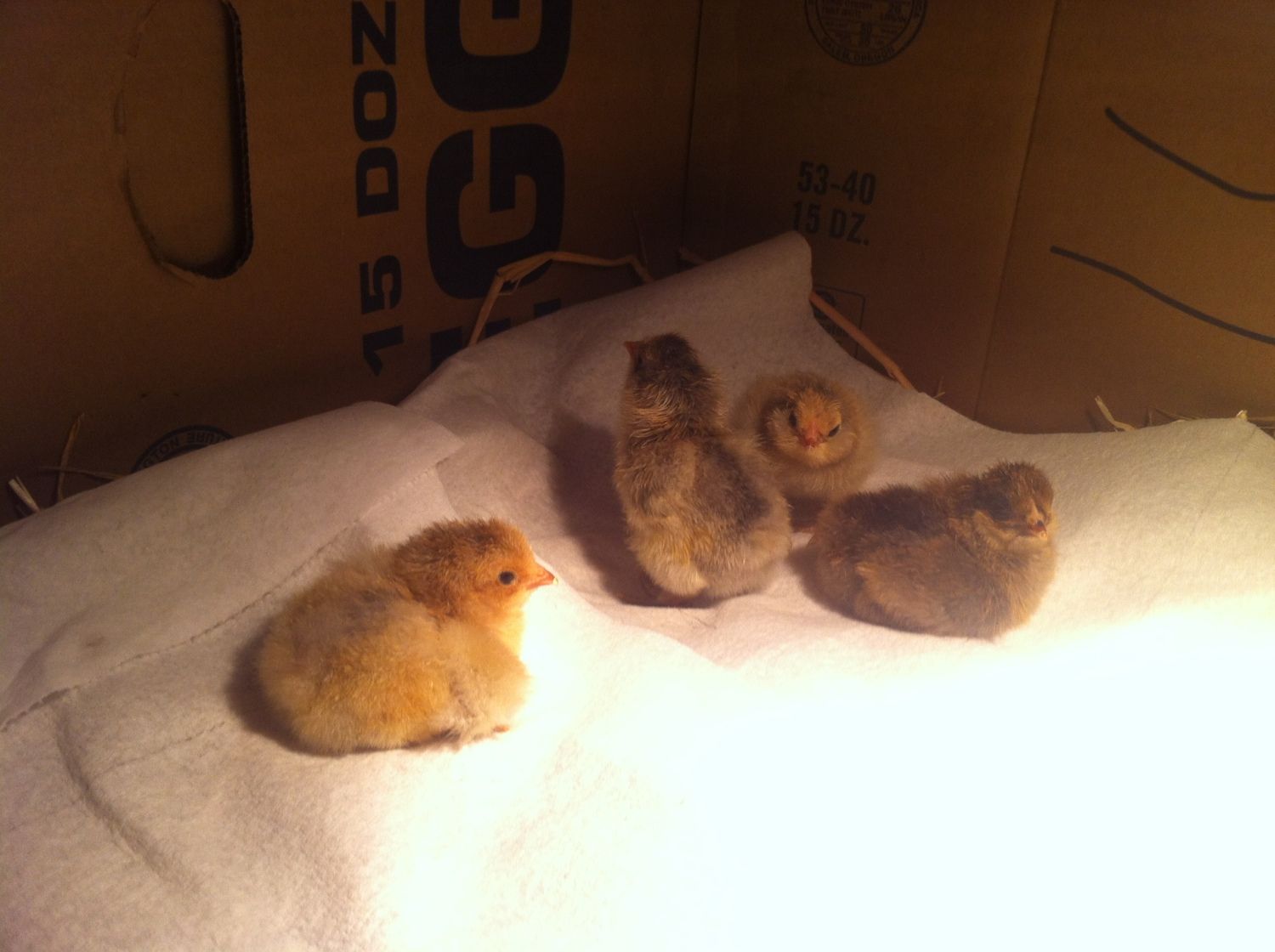 I think I'm calling rooster on this one.... What y'all think? Either that or a bold hen at less than a day old!