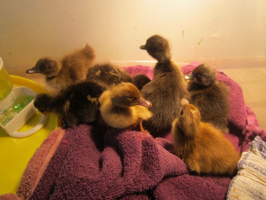 Congrats on your babies! They are sooo sweet!2 more hatched last night, a Campbell and a full-blooded Rouen. That brings us up to 7 out of 8 eggs. 1 last huge campbell egg is waiting to hatch. It pipped through the shell last night, and it is making good breathing sounds. I'll keep my fingers crossed! The ducklings came home from the preschool today, and they are getting comfortable in the brooder now.