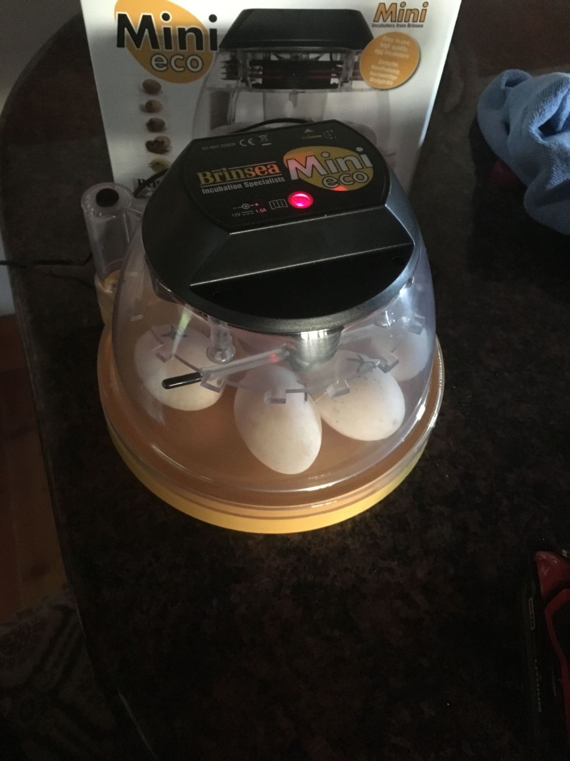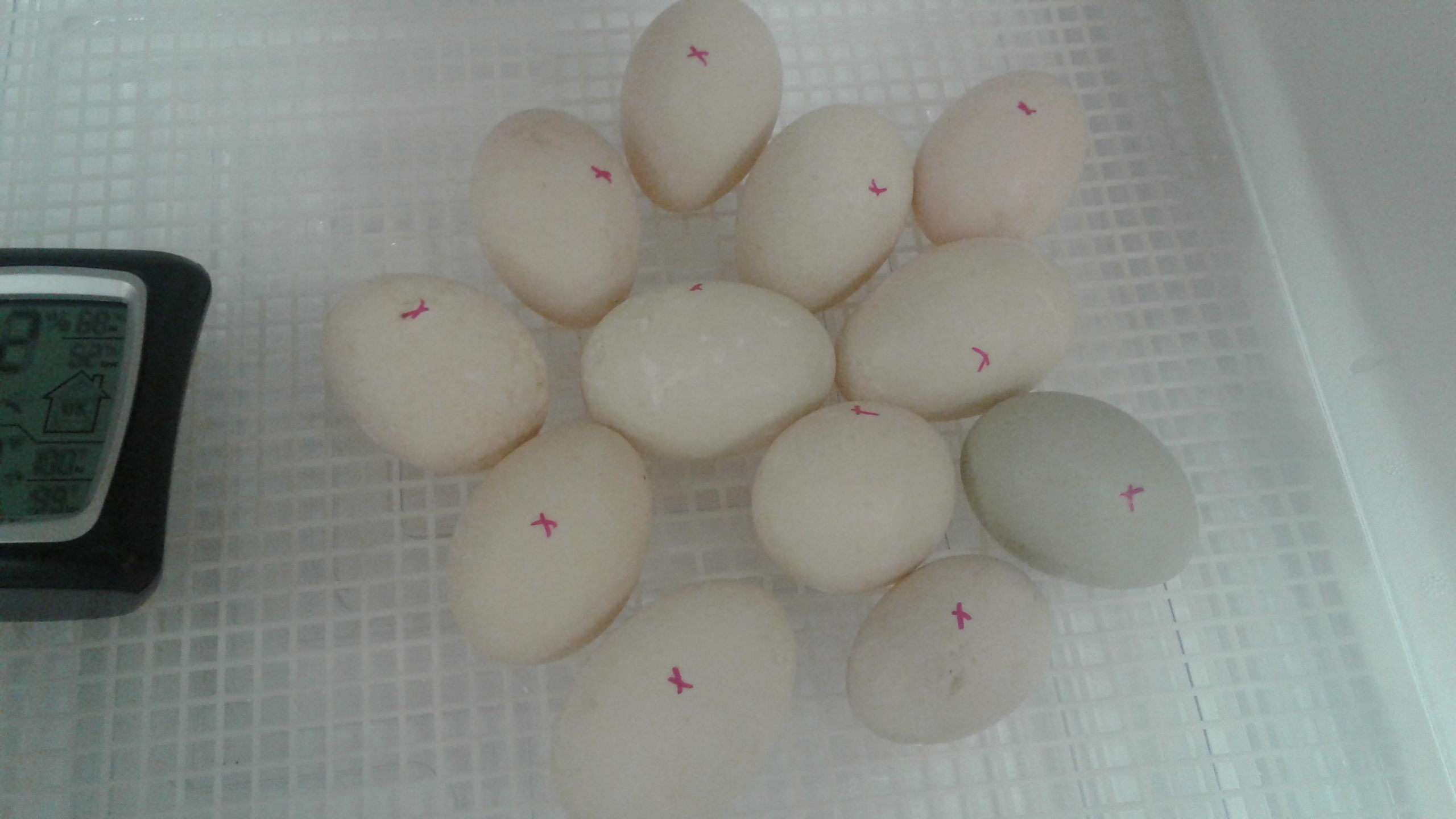 I did candle my eggs again on night one... so a little over 24 hours in the incubator. It was easier to see them since it was dark in the room vs daytime when I set them the day before. I was able to see the yolks. Yowsers, those marans eggs are tough to see into even in complete darkness! I've been able to keep humidity real stable around 30% it. Did get down to almost 20 very briefly and I added just a bit of water though the vent hole with a marinating syringe and it shot to 40% before stabilizing back to 30%. Temp still holding rock steady. I've observed no spikes or drops. I'm going to try real hard to not touch them until day 6 or 7. I really want to see the development, but I don't want to handle them too much. I was able to resist candling last night! Go me!