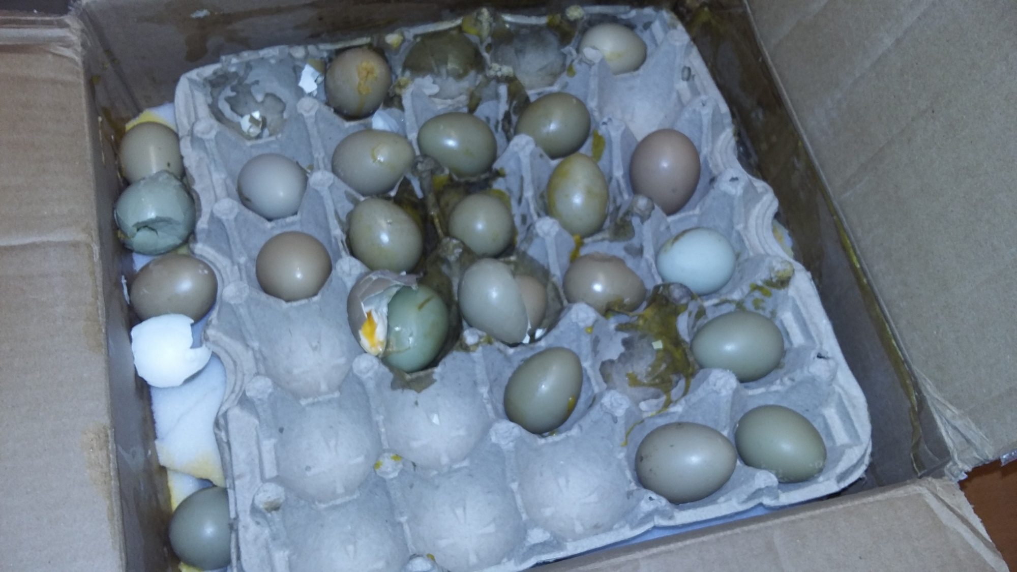 I sell shipped eggs and wrap them individually. That is horrible right there.I had a similar experience today. Terrible packaging, regardless of how the PO handles them. When shippers wrap each one individually, even with the roughest treatment, there might be one broken or cracked, but the majority stay intact (of course air cells are always dicey, no matter how well they are packaged.