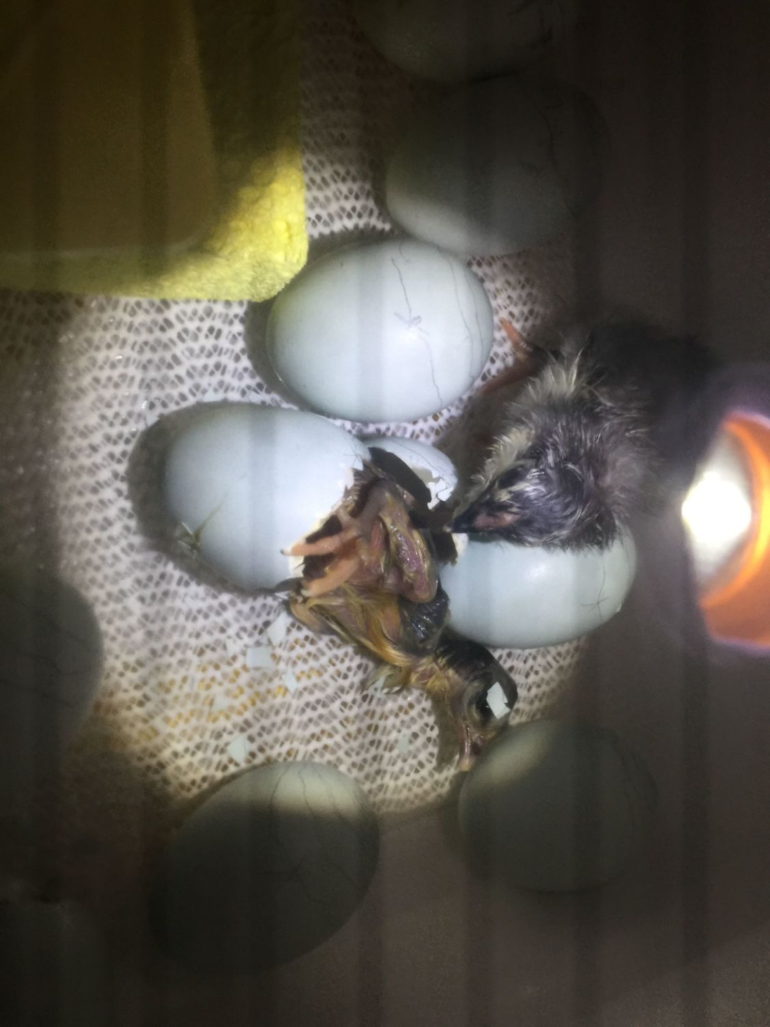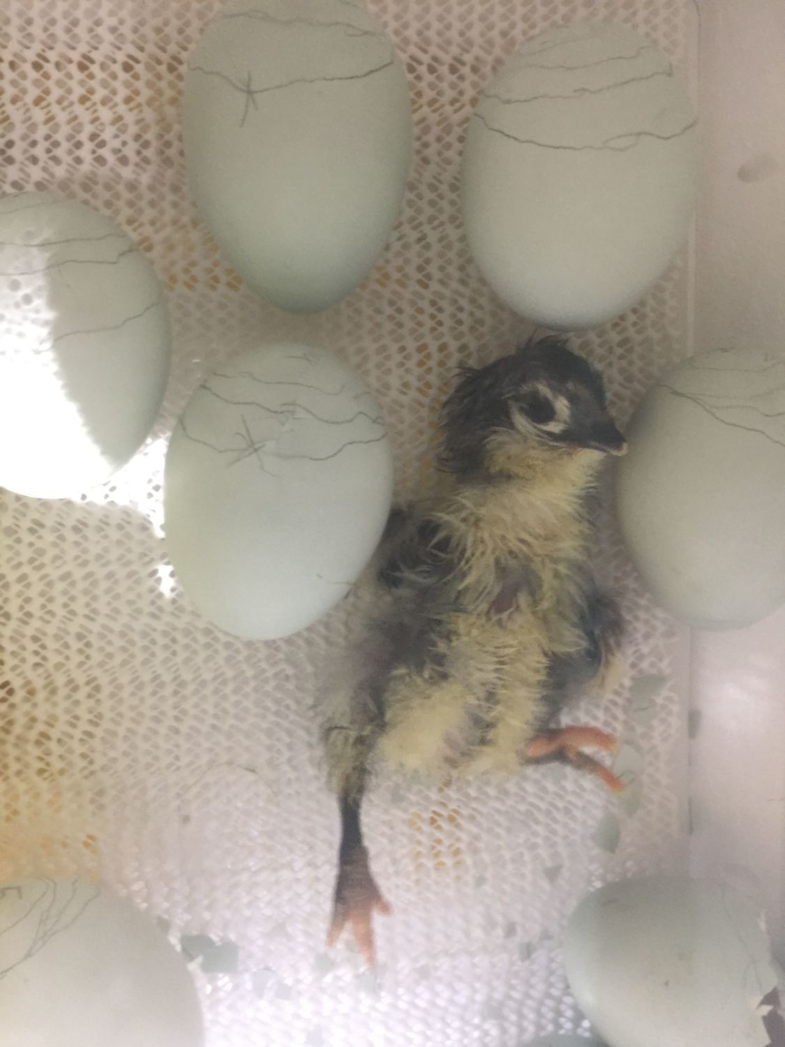 So I woke up early today and decided to take whatever time I have while the toddler sleeps to check in on the incubator. Sure enough there were babies! One of last nights pips had hatched, and another who must have progressed pretty quickly. I also got to watch a chick zip and hatch for first time! So now I have three chicks and four pips. They aren't quite at day 20. Plus so far they are all blue (not 100% sure with the fresh hatched, but I'm pretty certain)!!
