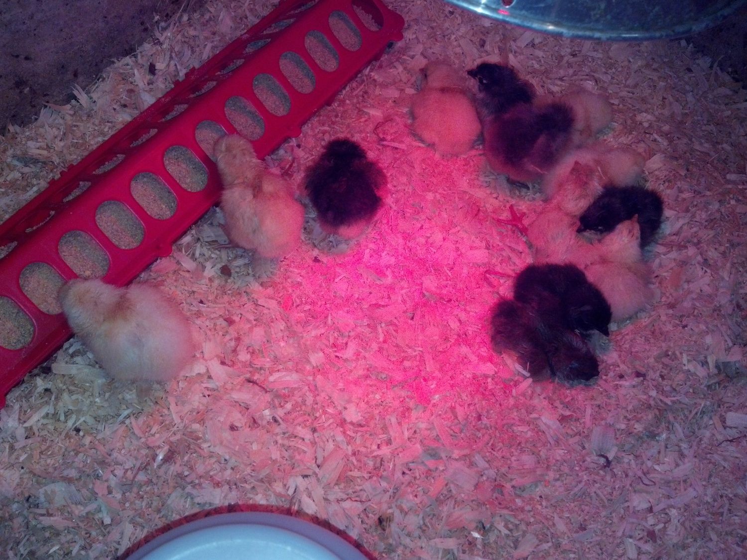 Moved 13 babies out to the brooder in the barn. 5 more have hatched, 1 is really not doing well. 5 have pipped and 8 haven't done anything as of yet. Pretty exciting weekend!