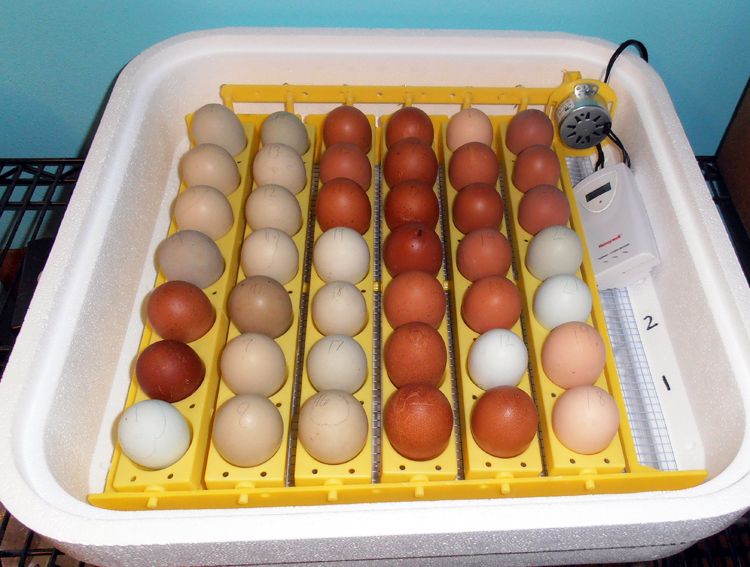 Eggs were shipped from two different sellers. I set them on 3/21, and am using a Hovabator 1588 with auto turner. Due date is April 11th. So far, so good! Ended up starting with 42 eggs, had just enough room. Phew!