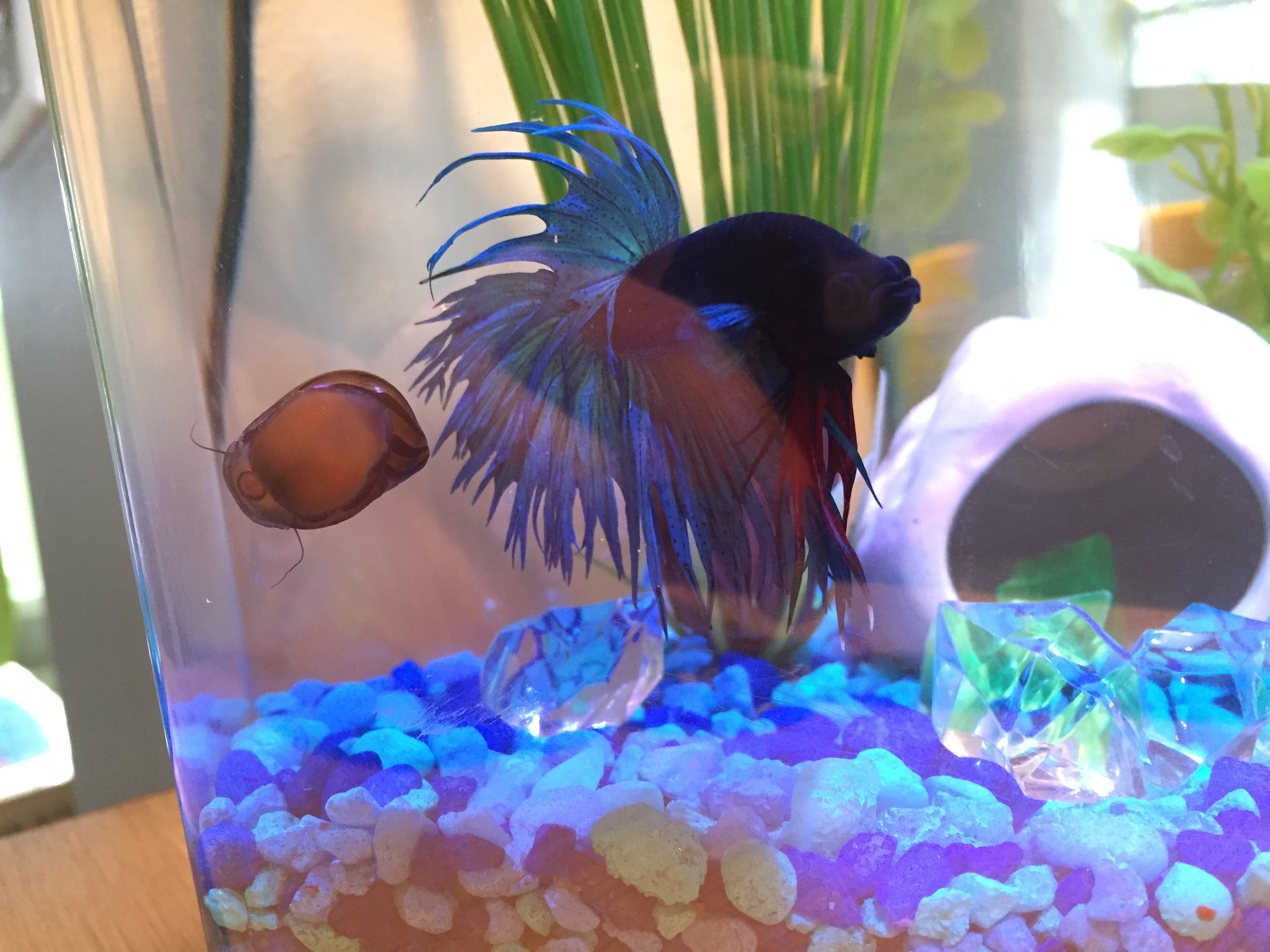 And then I got a nice Crown Tail Betta, Poseidon. He flares up a lot at Ron Snailson.