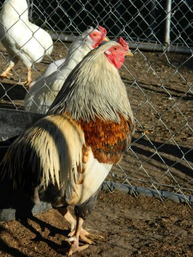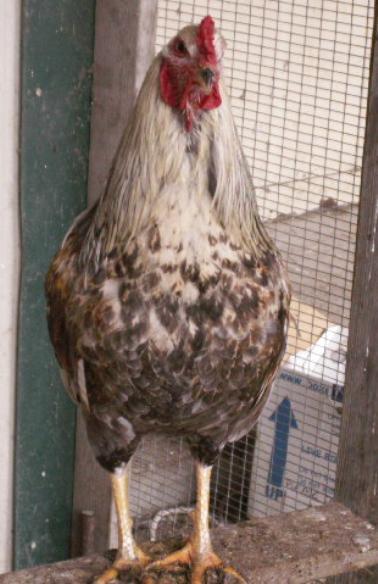 I agree that Buddy is colored like that because of blue. I have a duckwing rooster with similar color on the chest but not quite as diluted as Buddy, maybe Illia can tell us what I can breed to to dilute Jokers chicks to look more like Buddy and we can develop the color more?? And what would the hens look like to work with that color?