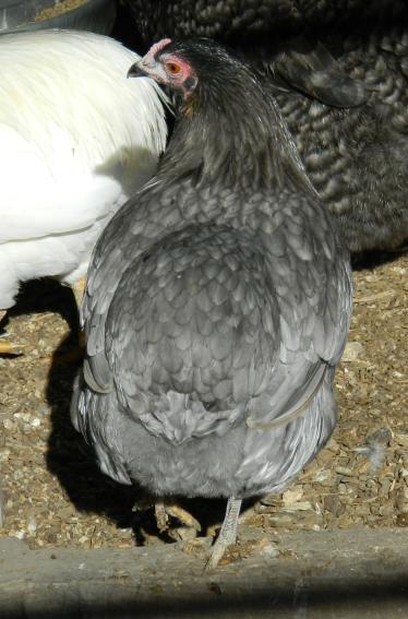 Here is one of my blue hens, she has the most lacing of any of my blues.