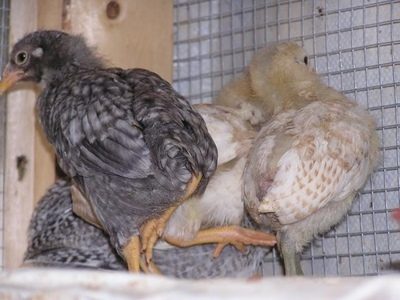 I am going to put a cockerel up for sale, he'll be on the auction site here. He hatched barred and still has some barring. One good tuft for sure, possibly a tiny one on the other side. Rumpless, yellow legs. nice pea comb. I think his color is ugly but it's definitely interesting and if he's truly barred, breeding him with a black hen or barred hen might clean up the coloring. I've hatched others that were barred but ended up blue as adults so no guarantee he will stay this way.