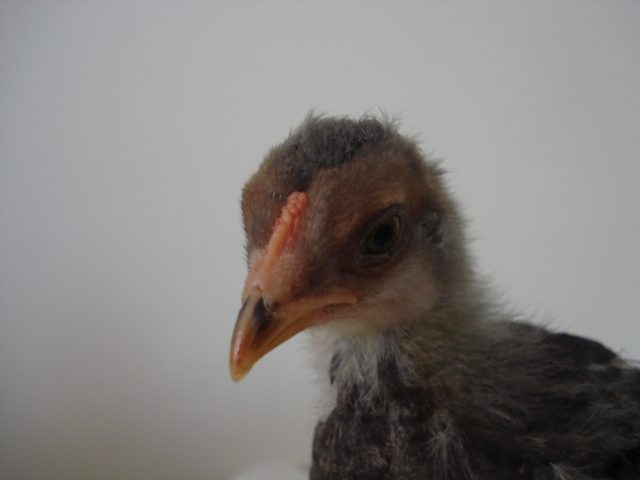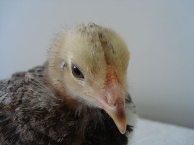 I've never had a crossbeak with my araucanas. I had one, when I had silkies, but that was years ago. That poor chick I culled since it could not eat or drink properly. It was sad because it was the nicest, friendliest of the chicks. I've heard that sometimes this can happen with incubation problems, but I'd watch if I were you if it continues to develop and become more crooked. I definitely would not use it for breeding if it ends up crossbeaked. I was given a crossbeaked hen long ago by someone who didn't want her. She was a good egg layer and I just kept her with my non breeding hens that I keep just to sell eggs. Her beak was severely crossed but she lived for years with no problems. She was a very messy eater and i keps a large dog bowl filled with food for her. She was a buttercup. A real cutie. I kept a Mille fleur roo in with the girls, he was such a gentleman. I never saw any missing back or neck feathers on them. They were so patient and would just lay calmly there. I was surprised that some of their eggs wre fertile, he was only a fifth of their size.One of the chicks has a slightly offset beak. It was one that was stuck in the egg and the head dried in the shell, not in proper position, probably longer than it should have before I peeled it out. Now I don't know if the problem is hereditary or due to the hatching. Carmel, you may be able to help me here.