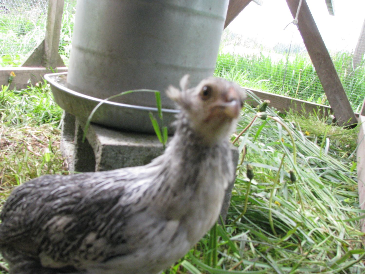 I just love these chicks. Three out of my four chicks have tufts. I feel so lucky. I might actually begin breeding Araucanas. I love this little cockerel. I have no idea about his color. When he was a baby he had a very faint duckwing pattern. He is clean faced, but I want to use him. I will need advice on how I can use him.