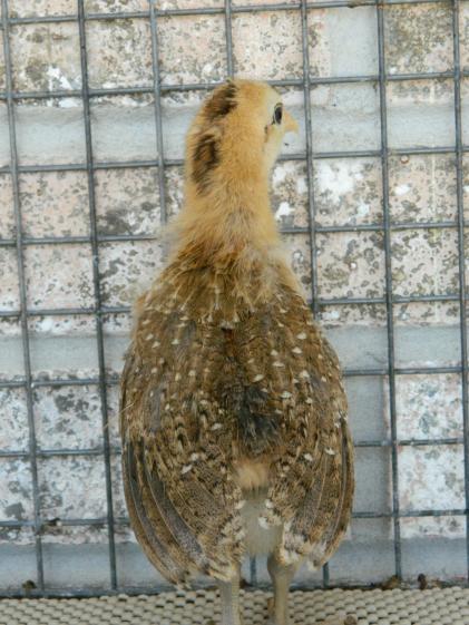 Chick 4 - Could this one be mottled? I was thinking he was birchen, I don't have anything mottled.......unless.....well, India and Obie are both solid black but both have a few white tipped feathers. Or is this just juvenile feathering and it will come in more black?? I have another one like this, I'll take some pics later today