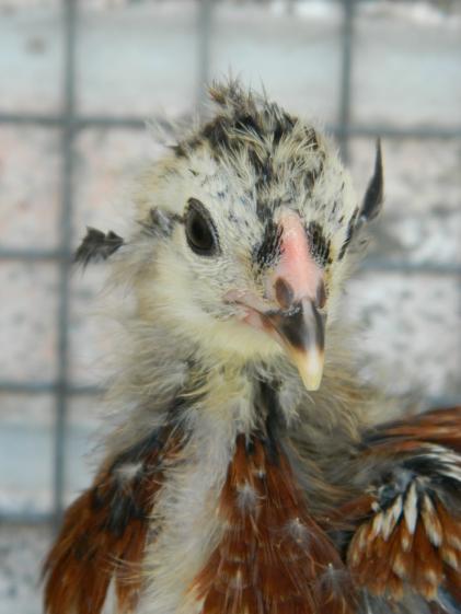 Definately a roo. And your girl is adorable. Now breed her with a rumpless tufted araucana and sell the eggs from her rumpless pullets as Naked Neck Araucanas. LOL! That would be a truly goofy looking bird.So awhile back I posted a pic of this one, and the unanimous thought was rooster. However, he is now 16 weeks old, with NO crowing even though others his age are. He also is very mild mannered, no posturing of any sort, although he does have a bad leg from a dog attack. I *think* I see spurs coming in, though. But then I saw a pic of somebody's hen that had a comb just like this, even though my Araucana hens combs are WAY smaller. Do you all still think roo?