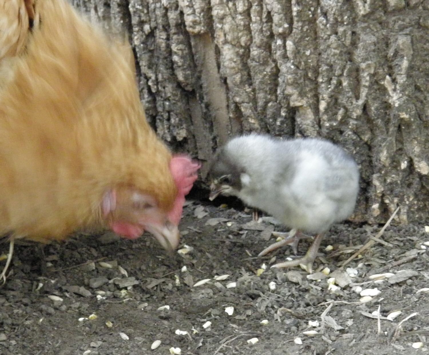 Here's something I've been working on since my first batch of Araucanas hatched on 7/22. I've been taking pictures as they mature hoping it will be useful for future hatches to predict what the mature birds will look like. I figured there might be newer people on this thread who may find it useful as well. So I hope you all like pictures! All of these birds were purchased as hatching eggs from Ray_n_Debi. This is Hawk at 3 days and 18 weeks. She's a blue, clean-faced, rumpless pullet.