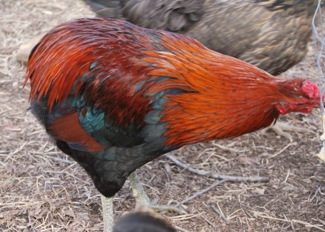 This little black double tufted and rumpless pullet is out of my sex-linked pen. I am just starting to get a few chicks. Winter came back so the eggs are not abundant and fertility is hit and miss.