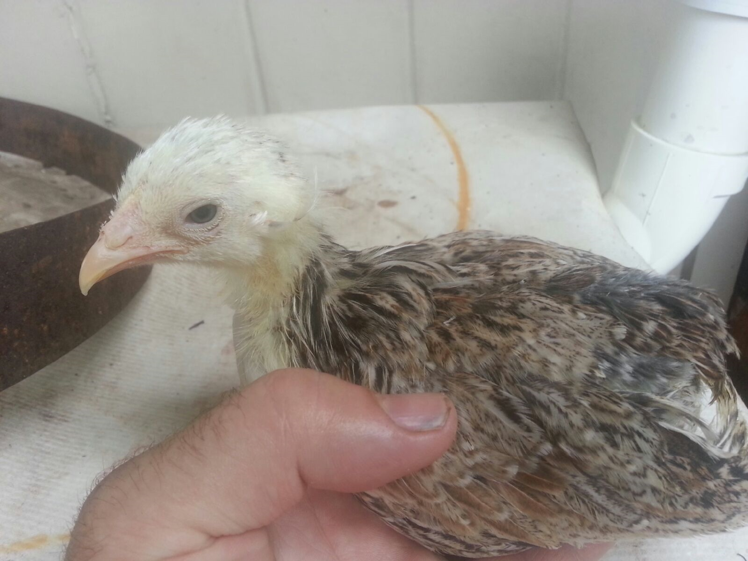 This is one of the F1 cockerels from the chocolate project, not a whole lot to fix and he carries chocolate and is breeding now.'