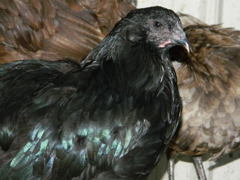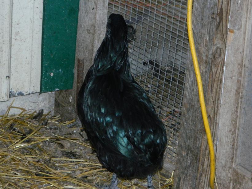 The black pullet was very nervous about the picture taking.