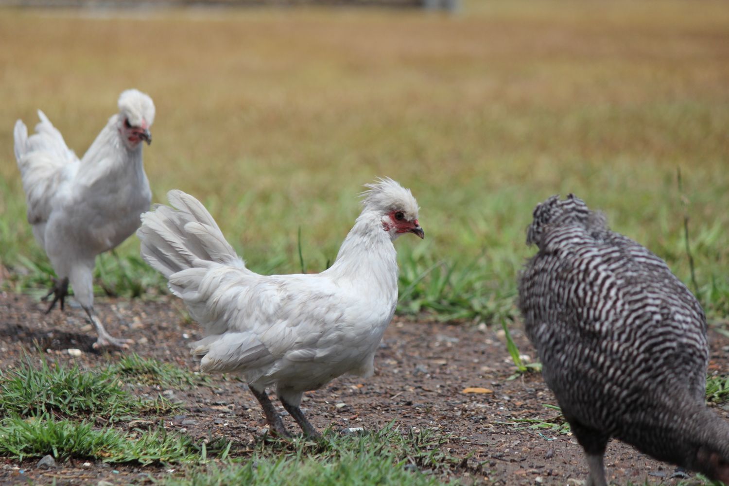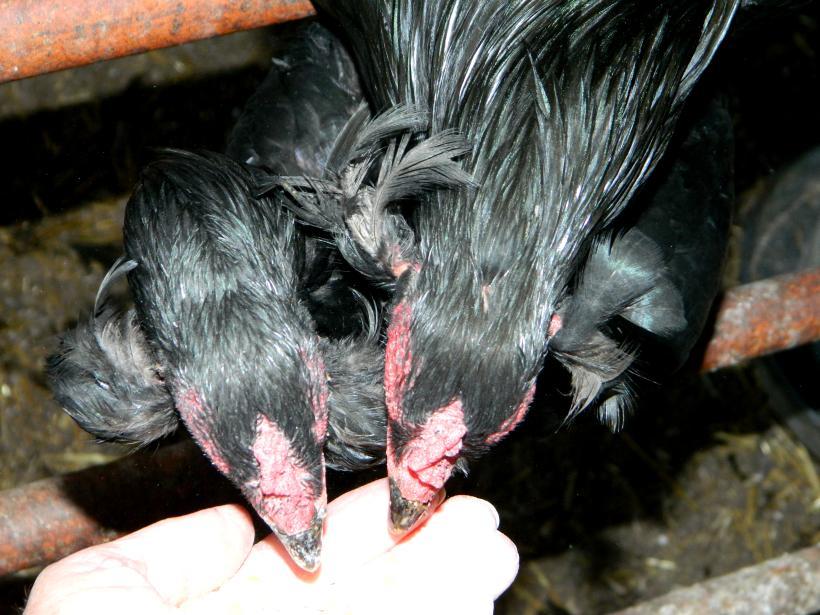 They definitely behave like young roosters. I will try to get some close up shots of their face and comb/crest for you although they don't stand still for long. It seems that the crest is part of the British line. They are pretty, my girls call them the purple chicks.