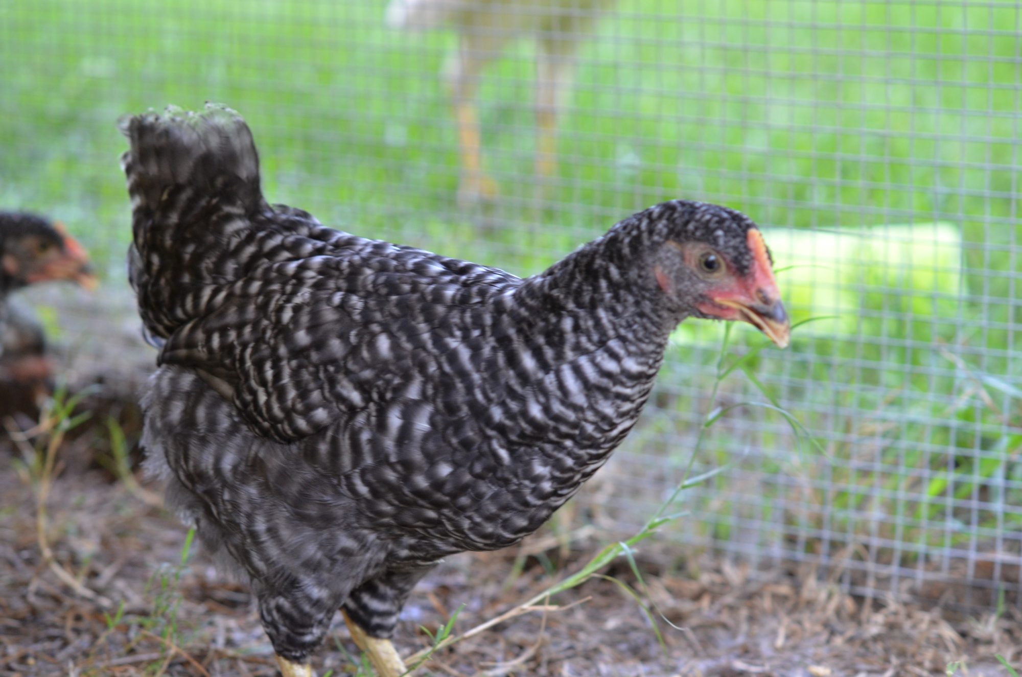 I have 3 barred rocks as well that are 2 months and look almost identical to yours... And I too have one who runs right up to me pecking at my fingers and toes and wants me to hold her.... She's becoming one of my favorite chickens with her curiosity and friendliness![]()