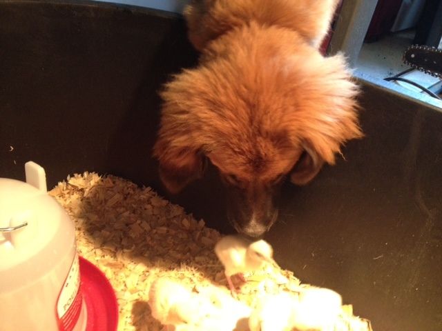 I would say never trust her with the birds if she already proved she is a killer then rule of thumb killed once will kill again.This is our Lab/Rott mix "Missy". She loves to watch the chicks, but I'm afraid to let her get too close. She is a water/bird dog. She kills kittens (sad I know) and chases rabbits so I'm a little weary of letting her get too close to the chicks yet. They are 2 weeks old today and she is showing less interest in them. When they get a little bigger and she gets a little less interested maybe I will let them meet face to face. She hasn't tried to get to them while I change their water/bedding and such. So hopefully they will get along ok. Our cat "Oreo" loves to watch them too, but doesn't seem to interested in hurting them. Sometimes it's hard to tell what's going on in their minds. When we first brought them home, she and the cat would get in little hissing/growling matches when the cat would get too close to the brooder. But I don't know if it's because she thinks she is protecting the "chicks" from the cat, or if she is protecting her "snack" from the cat.
