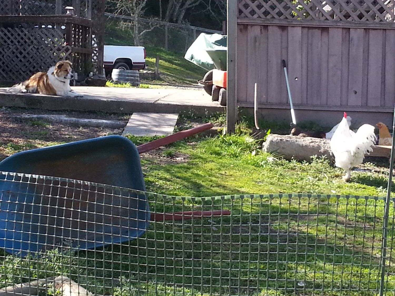 They all usually get along. One day however my chihuahua decided to chase after one of my roosters. I yelled at the dog and while the dogs back was turned the rooster jumped at him..lol I felt bad because Beau wasn't paying attention when the rooster decided to get revenge