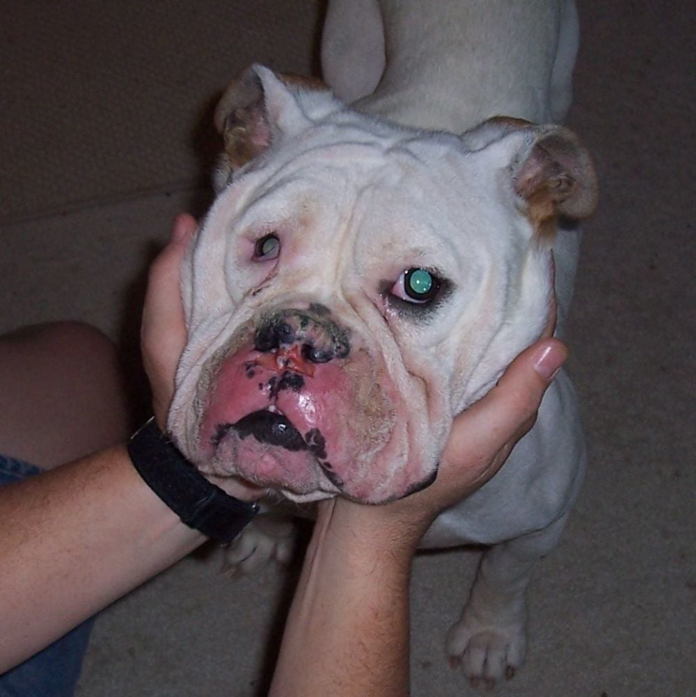 When she arrived at the new owner's house, her nose was partly torn off from a recent fight with another dog through a fence. It was no wonder the breeder wanted to be rid of this dog.