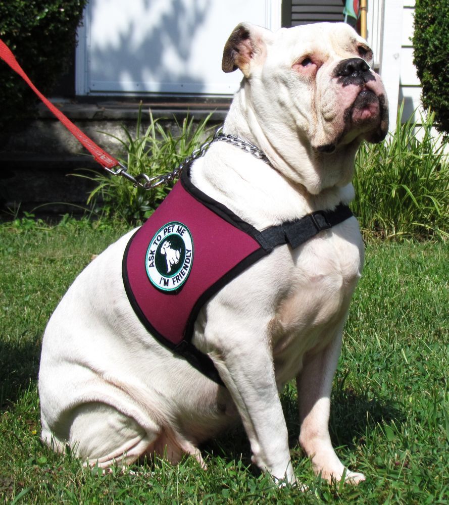 It's because she is a certified service dog - she helps my autistic daughter deal with crowds. The other side of the vest has the "Service Dog" patch. They are just reminders so people don't crowd up and try to pat the dog while we're in public.