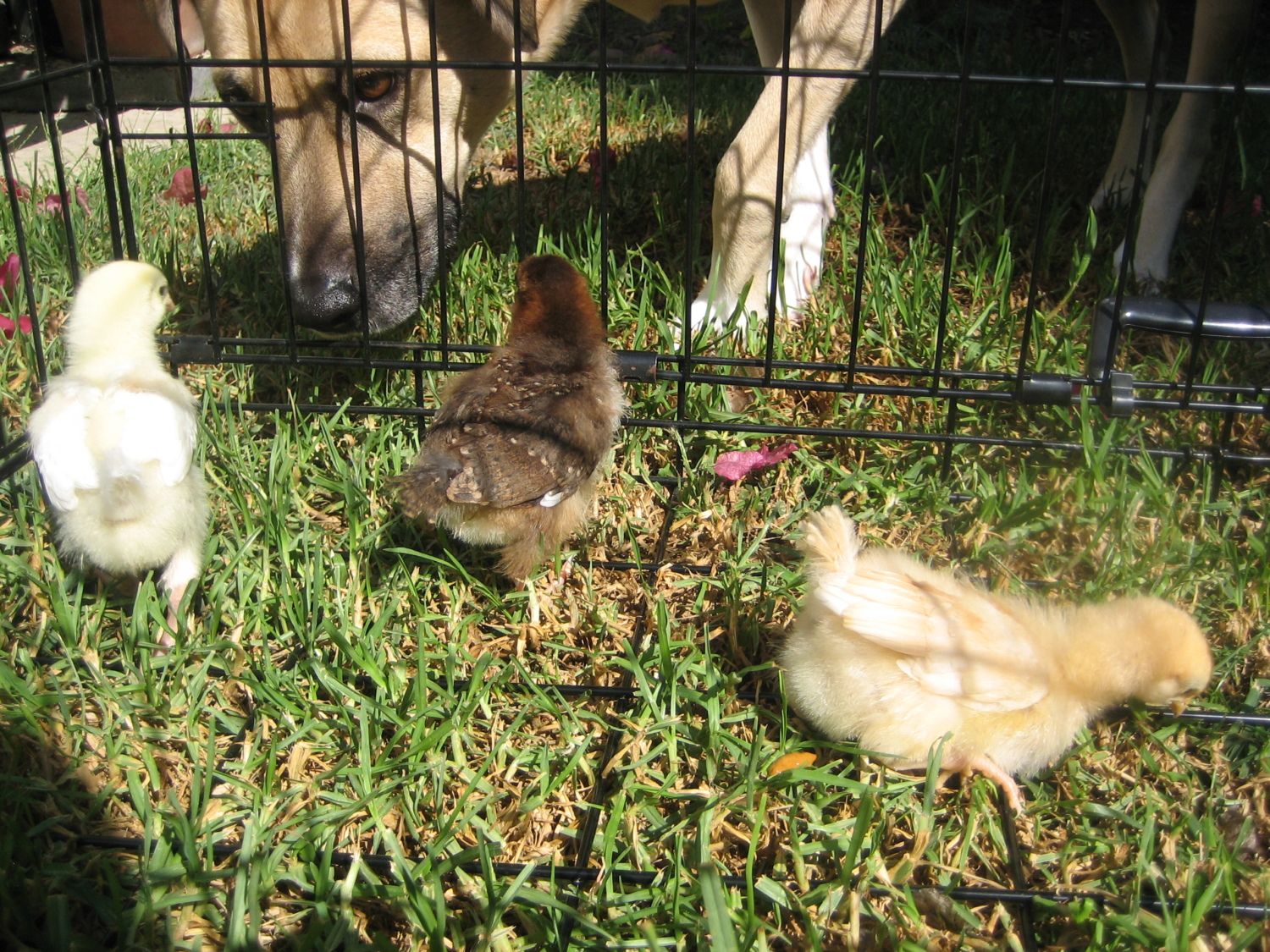 Now I can happily say that we can have baby chicks free-ranging in the yard, and my dogs won't bother them. We don't do that, though. Just because I trained my dogs, that doesn't say a thing for the neighborhood cats or hawks!