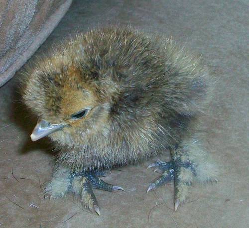 Cotton hatched another egg last night and left the new chick to get chilled when she took the others off to eat and mingle with the other chickens. I found the chick [I thought] dead but on the way to the garbage pail I felt a flicker of life so I took the chick in and cupped it in my hands and kept blowing warm breath air on it. The chick slowly came back. I help her for 3 hours and she was peeping away! I have the brooding box warmed up and she is doing all right so far. I even brought the other two eggs in just in case I was lucky enough to have them hatch. They are ready to hatch but not sure if they got to chilled or not. Those eggs will be doomed either way so giving them a chance. I have them under the lamp also. OHHH if I only had a bator! . I will name it either Shamrock [if roo] or Clover [as in 4 leaf clover, if hen] One lucky chick! I hope she doesn't get nuemonia! Hey I hear a lusty chipping coming from my room! Yea!