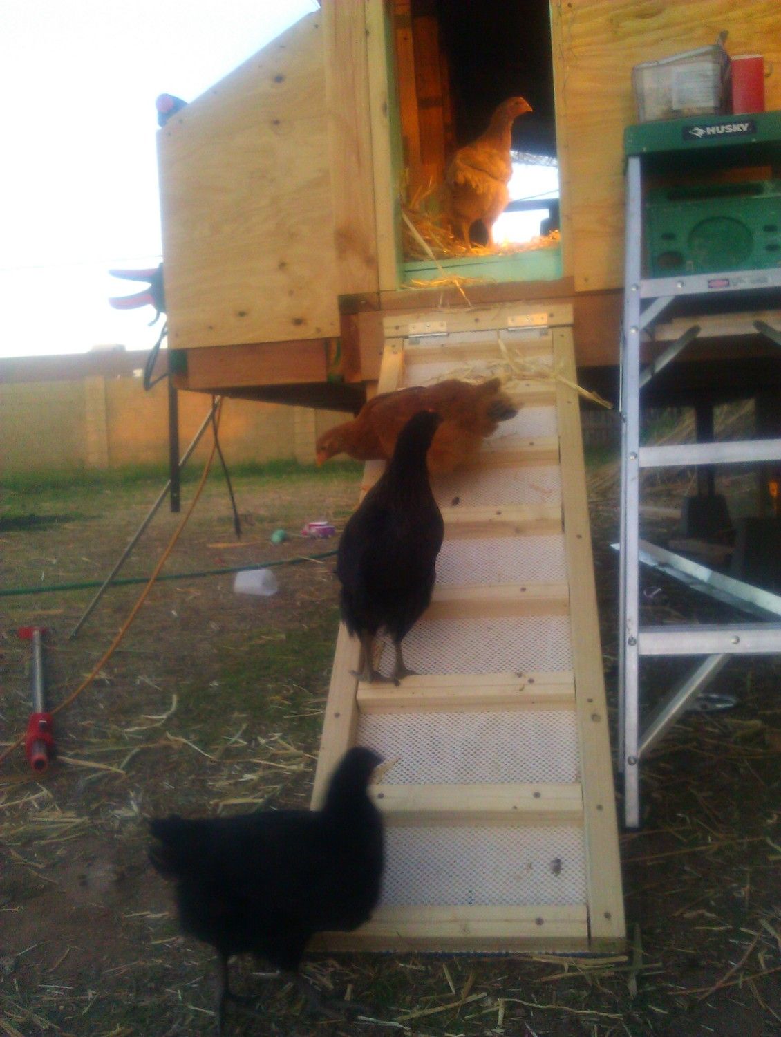 My little grow out pen is on the opposite end as is yours. I do not have a mini coop there as there is electrical access.